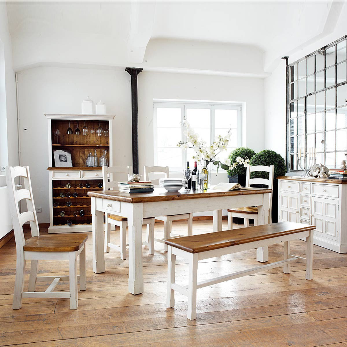Stuhl 2er-Set Kiefer massiv Weiß/Honig Landhausstil Bodde