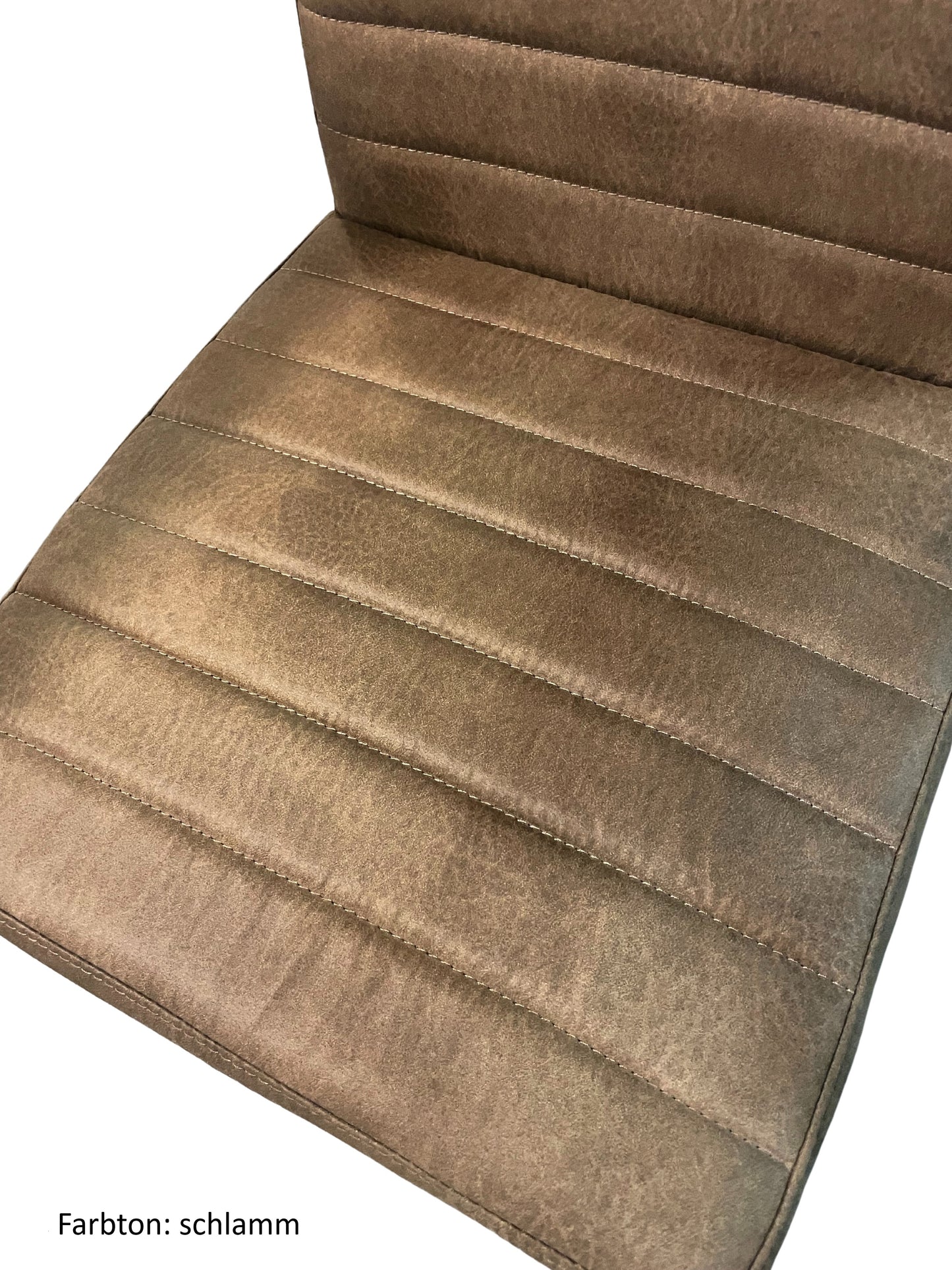 Der Bezug aus pflegeleichten Microfasern im Farbton Maron oder Schlamm passt sich fast jedem Einrichtungstrend an und lässt sich wunderbar mit Echtholztischen kombinieren. Ein Blickfang für jedem Raum, dazu der hohe Sitzkomfort machen diesen Freischwinger zu etwas ganz Besonderem.