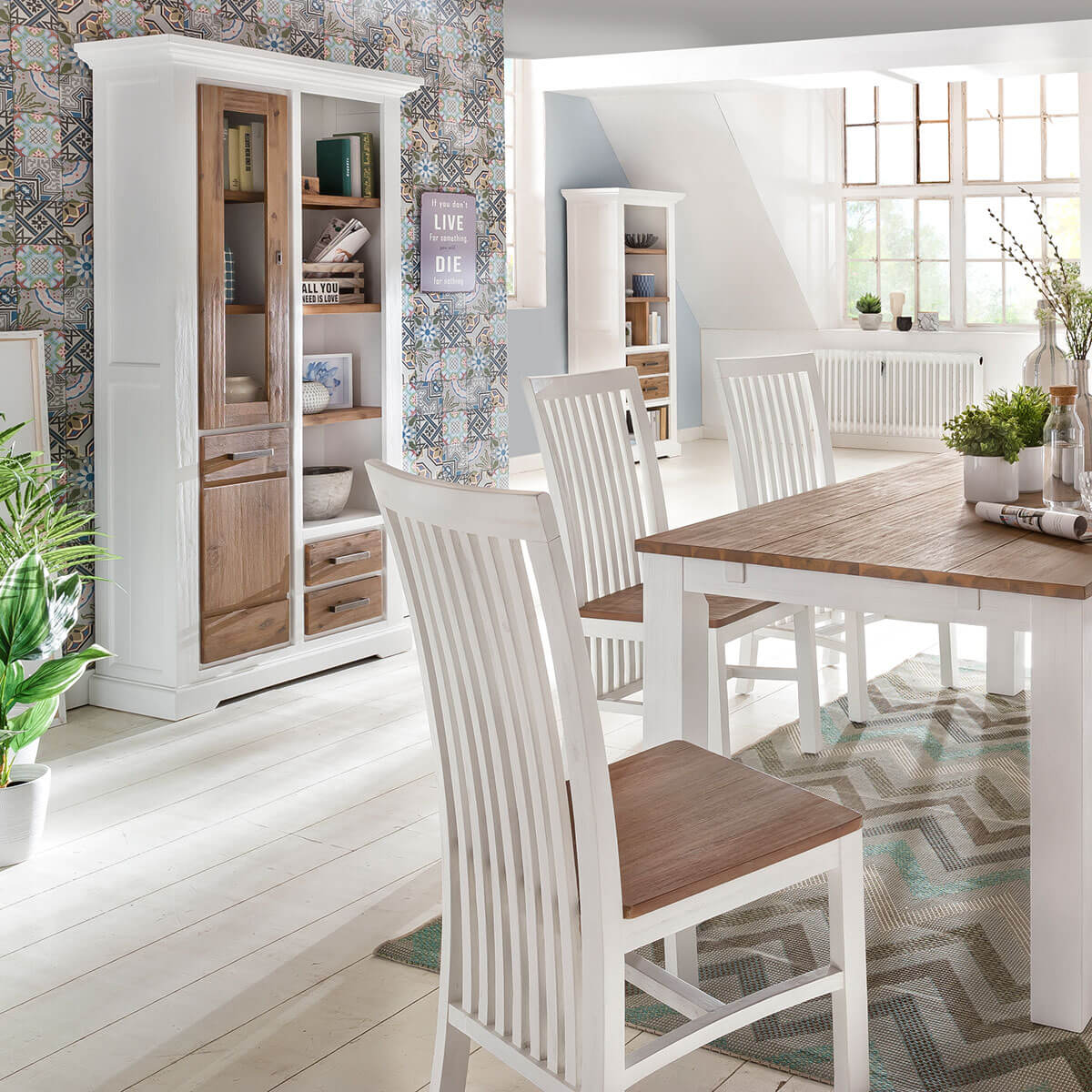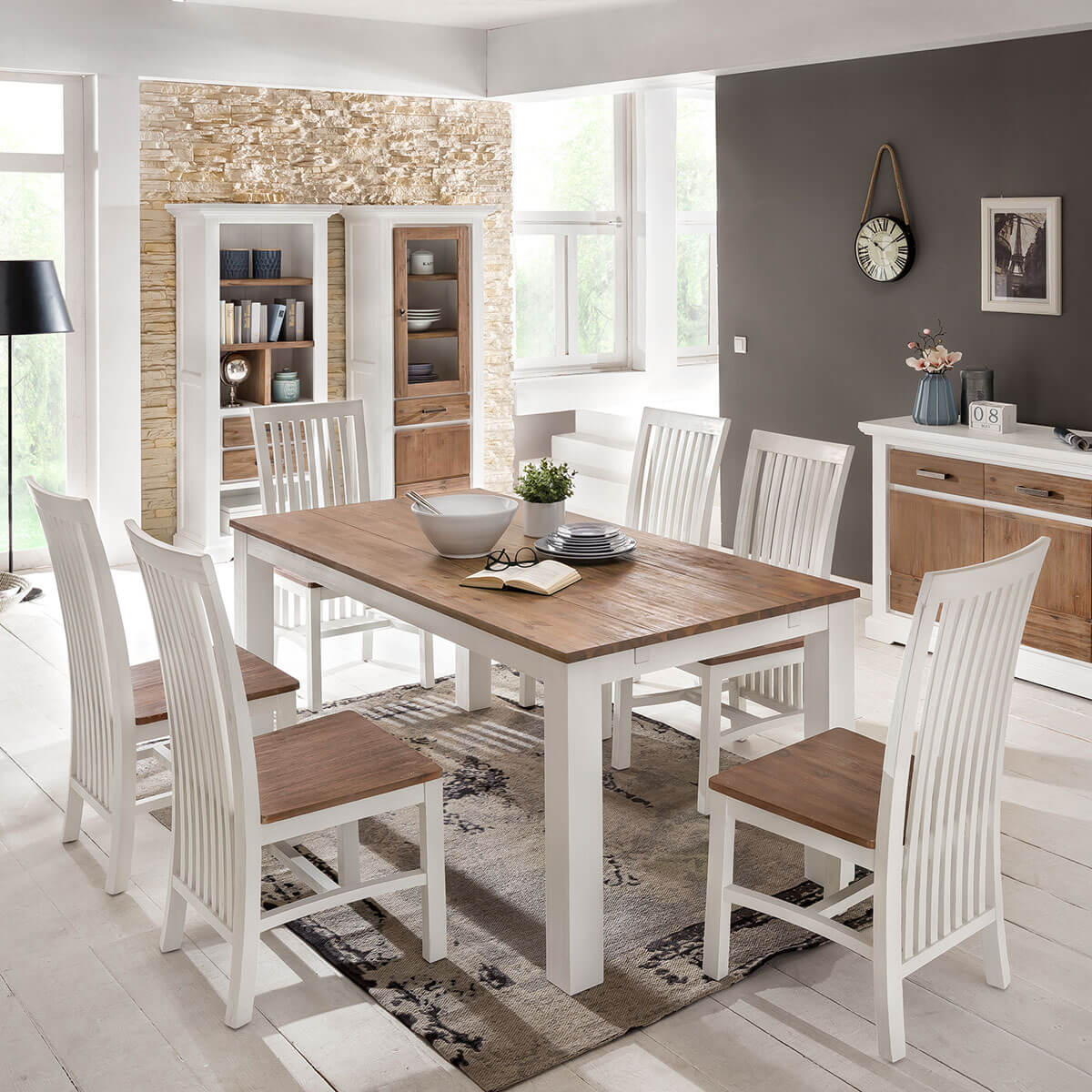 Esstisch 180 x 90 cm Akazie massiv Weiß/Cappuccino gebürstet Lalé