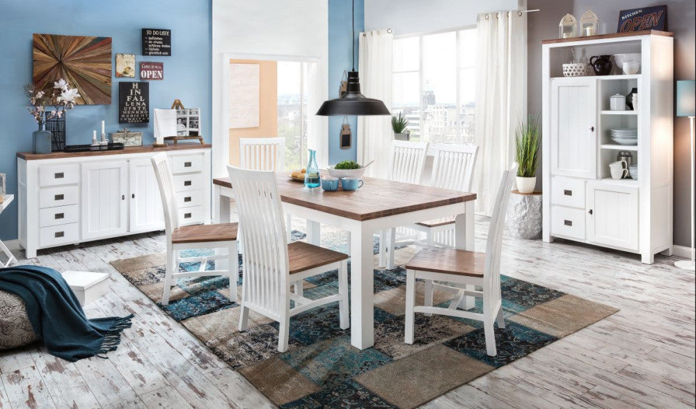 Esstisch 200 x 100 Akazie massiv Weiß/Cappuccino Lyron