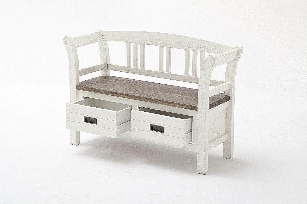 Auf der gemütlichen Sitzbank darunter, kann man nicht nur gut sitzen. Durch die beiden integrierten Schubkästen erhält man zusätzlichen Stauraum.