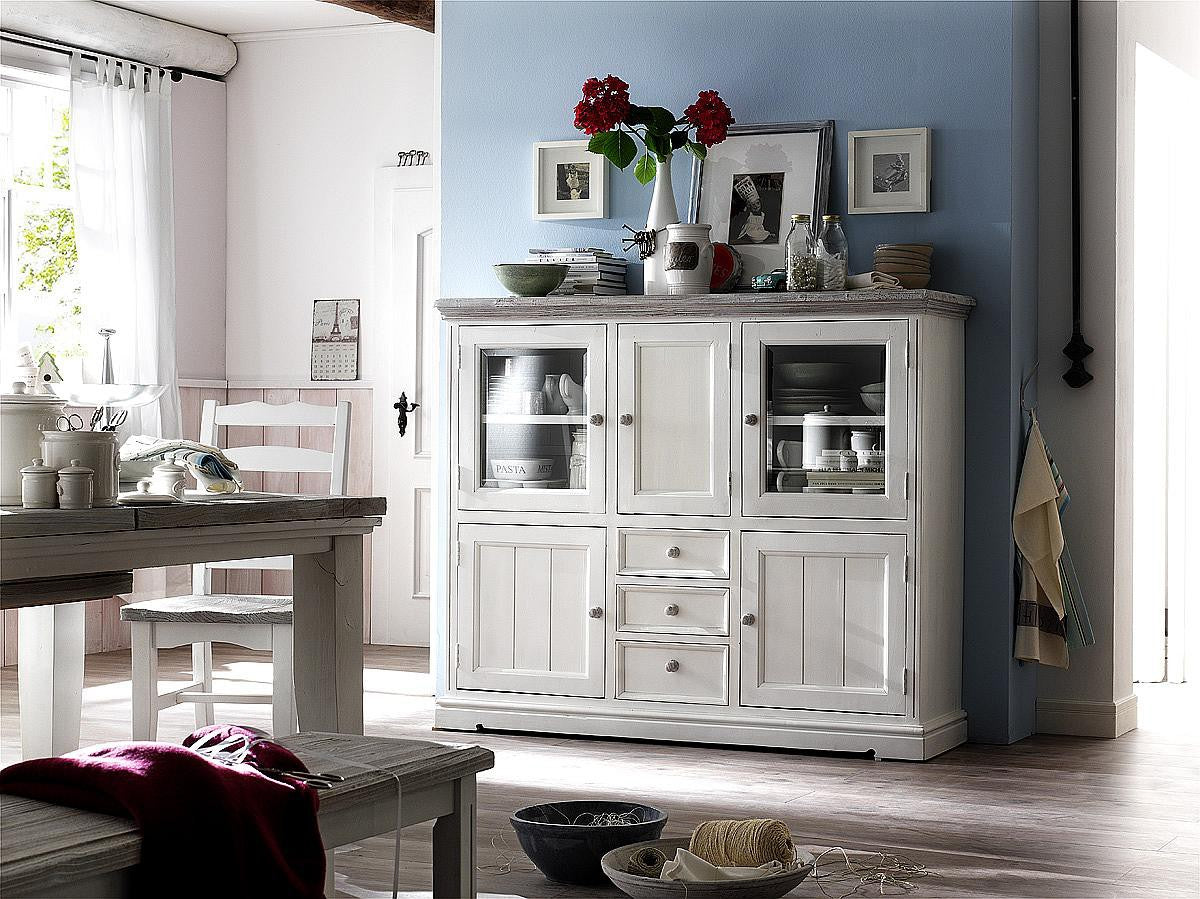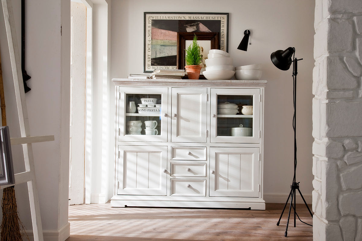 Highboard Kiefer massiv Landhausstil weiß / white sanded Opus