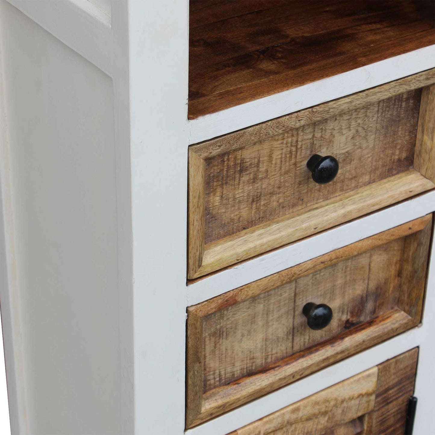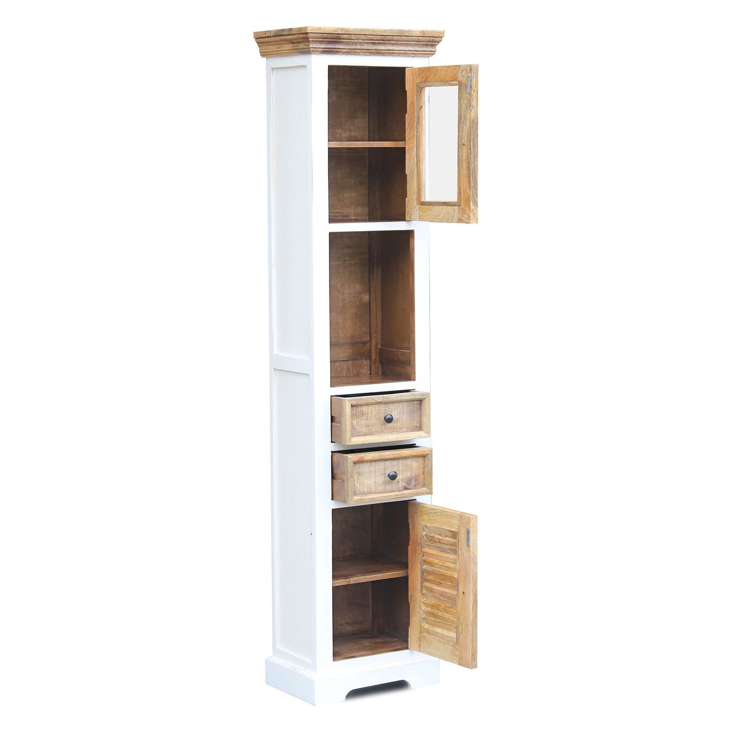 Hochschrank Mango massiv weiß / braun Landhausstil - Neron