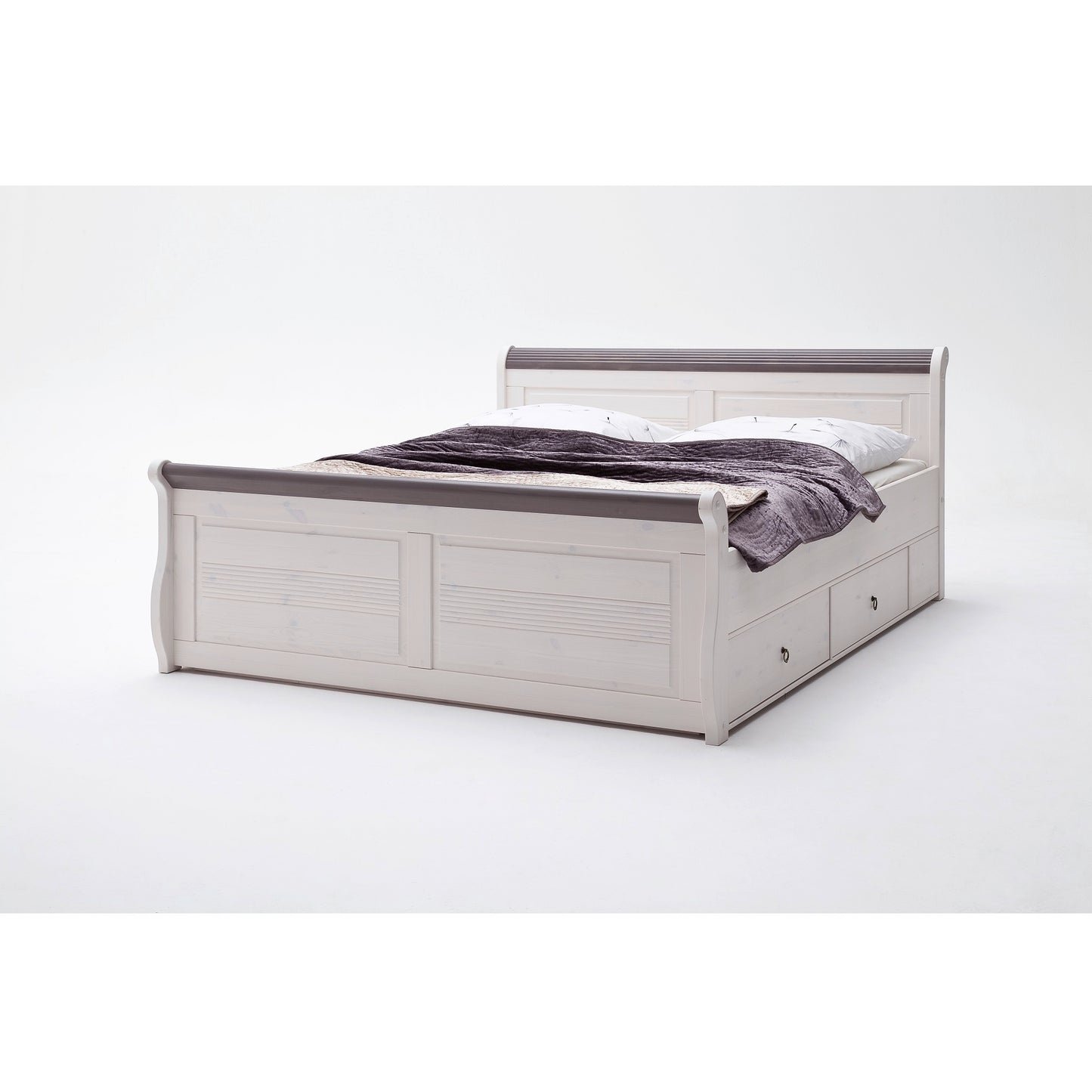 Holzbett 160 x 200 cm Kiefer massiv weiß / antik Oslo