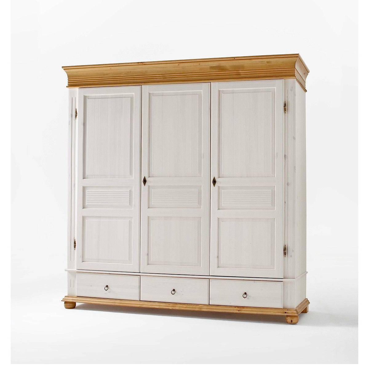 Kleiderschrank 3 trg Kiefer massiv weiß Landhausstil Oslo