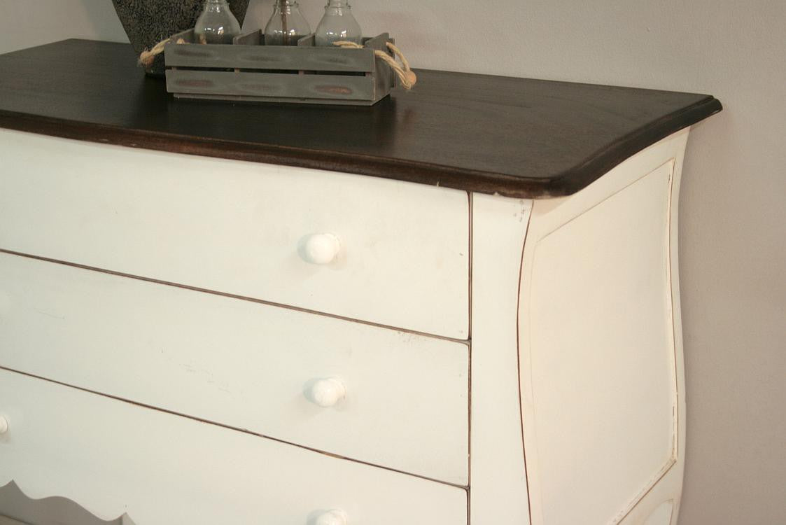 Die in Altweiß lackierte Oberfläche in Kombination mit der dunkelbraunen Deckplatte schafft ein tolles Ambiente.