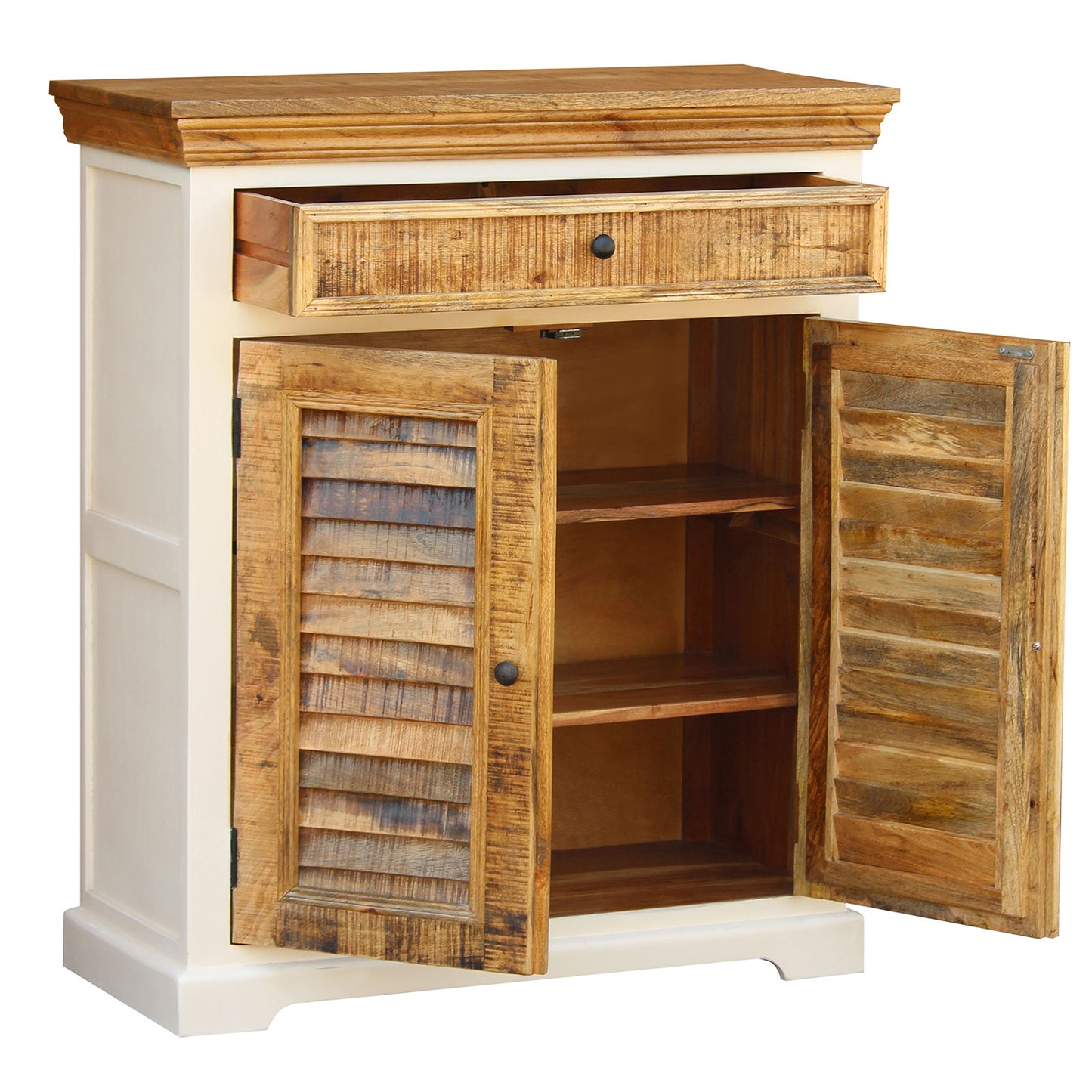Kommode Mango massiv weiß / braun Landhausstil - Neron
