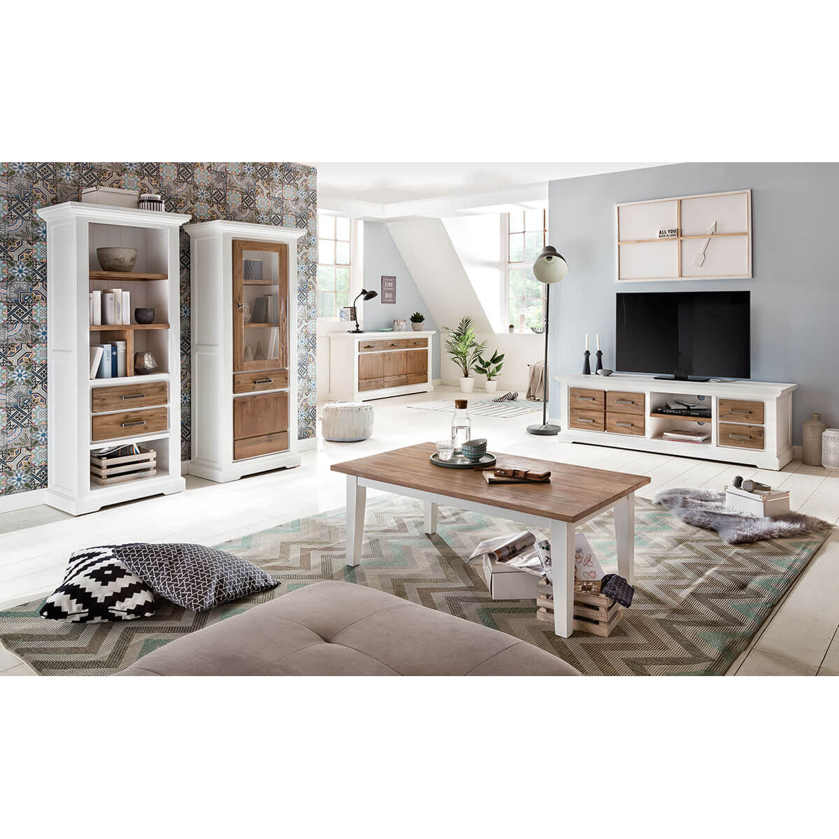 Der Landhausstil steht für Gemütlichkeit und Freundlichkeit. Wer sein Zuhause in diesem Stil einrichtet wird selbst erfahren, was für einen tollen Charme dieses Design mit sich bringt. Damit der Landhausstil modern erscheint, wurde bei den Lalé Möbeln auf unnötigen Schnick-Schnack verzichtet. Hier sind gerade, klare Linien gefragt. Selbstverständlich wurde trotzdem nicht auf den Kranz und den Sockel verzichtet. Hinzu kommt noch die tolle Farbkombination. Alles zusammen ergibt dann einen ganz besonderen Charme der modernen Ausführung des Landhausstils!
