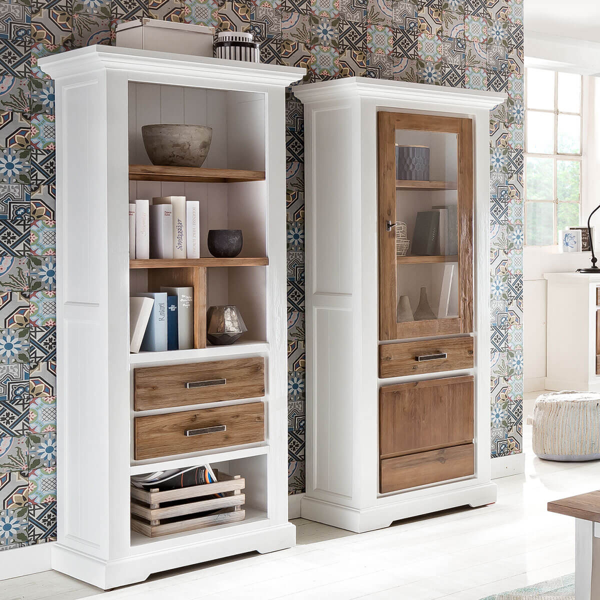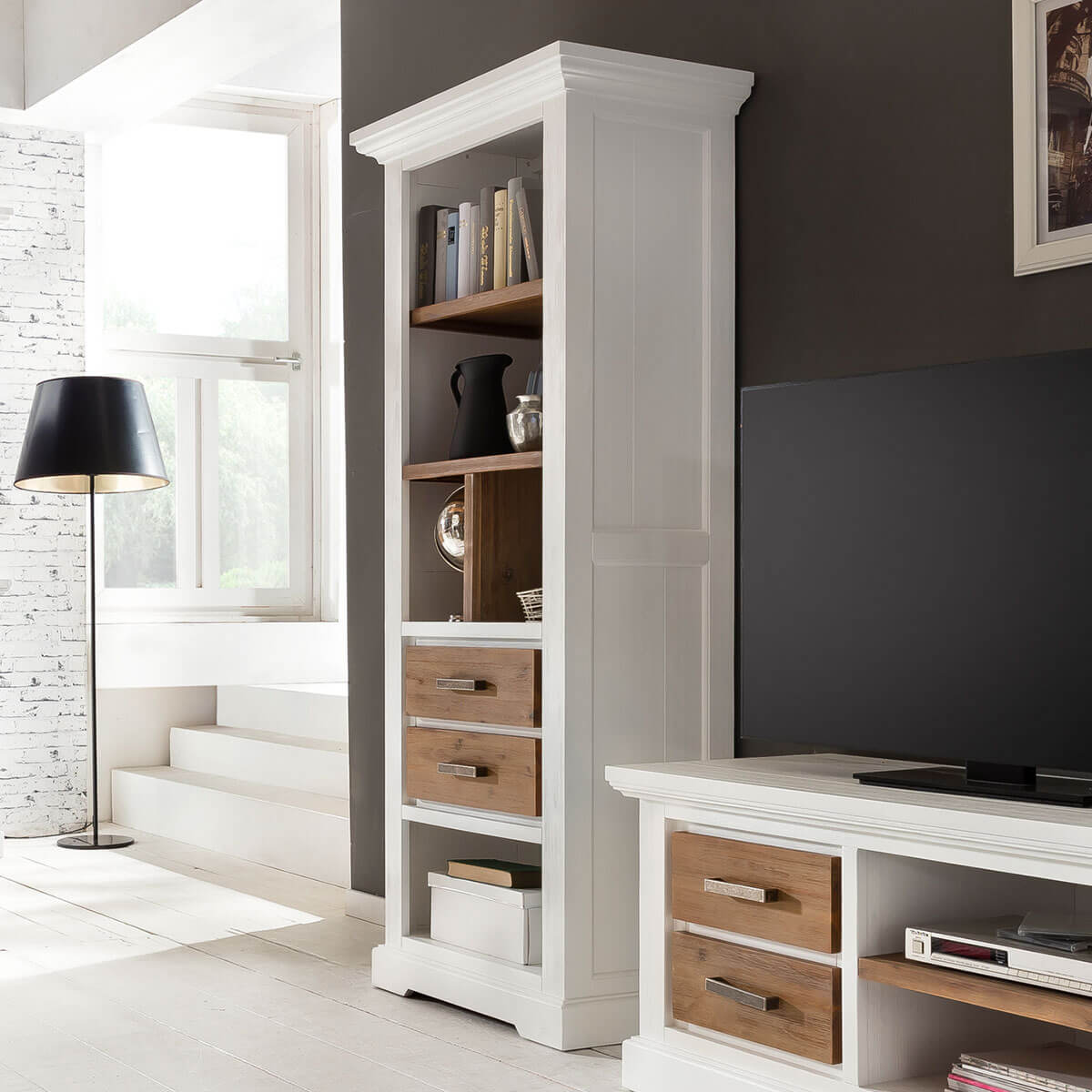 Regal Akazie massiv Weiß/Cappuccino gebürstet Lalé