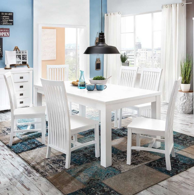 Massives Akazienholz mit seiner wunderschönen Holzstruktur im Farbton weiß passt sich überall perfekt an.