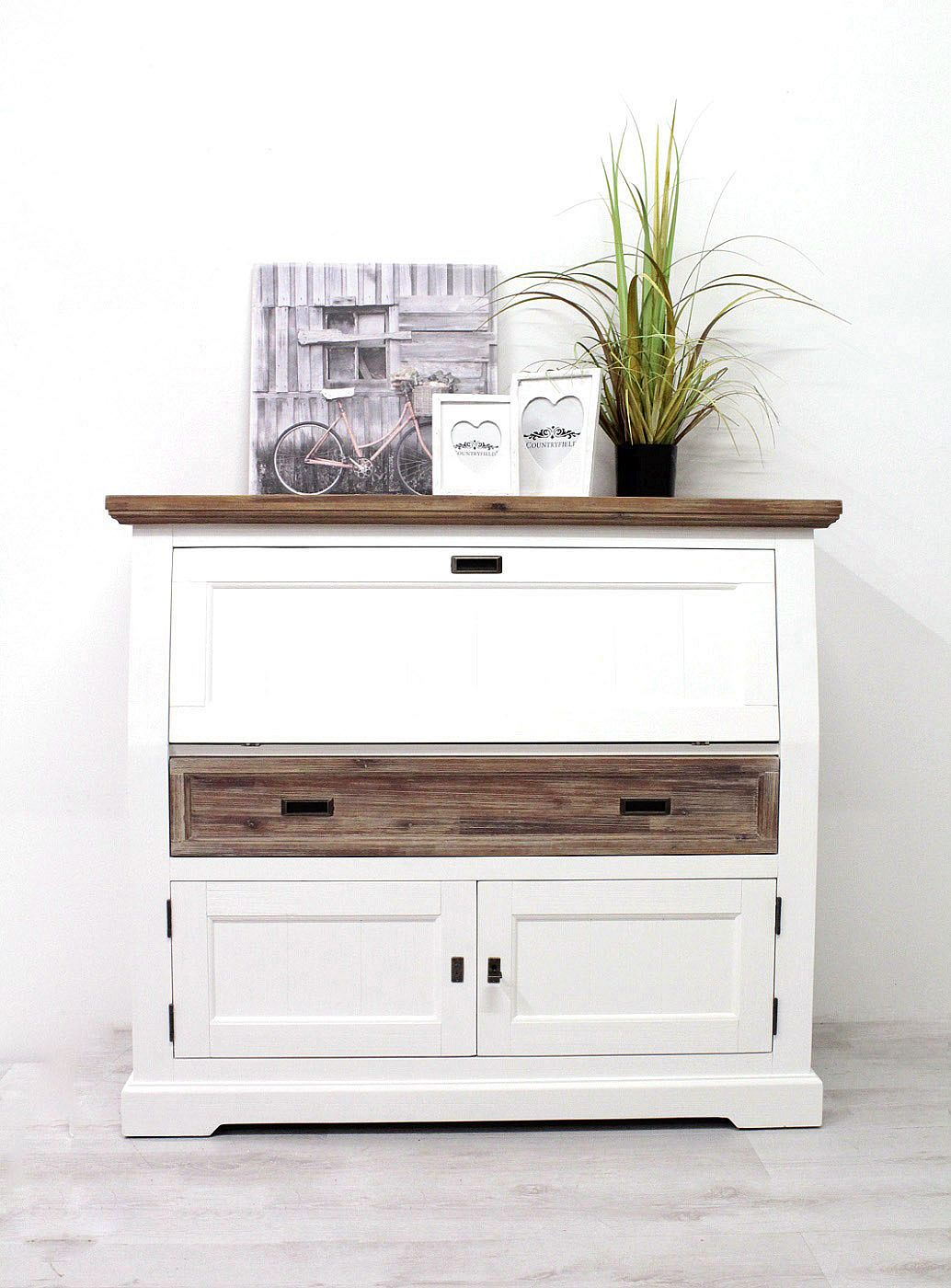 Sekretär Akazie massiv weiß / cappuccino Landhaus Fleur