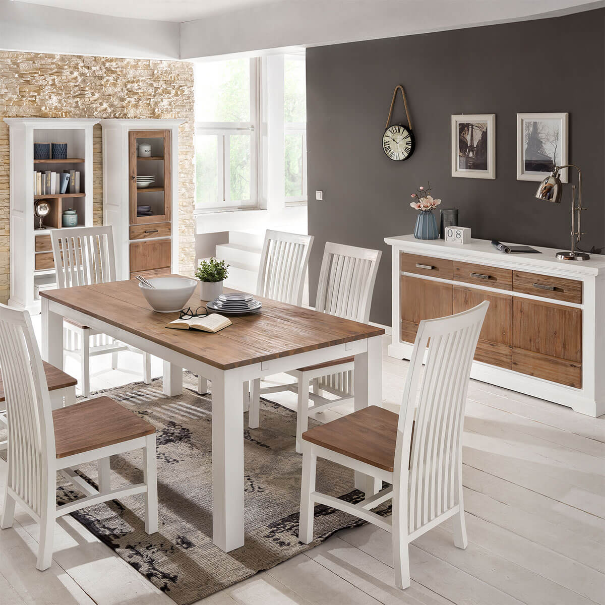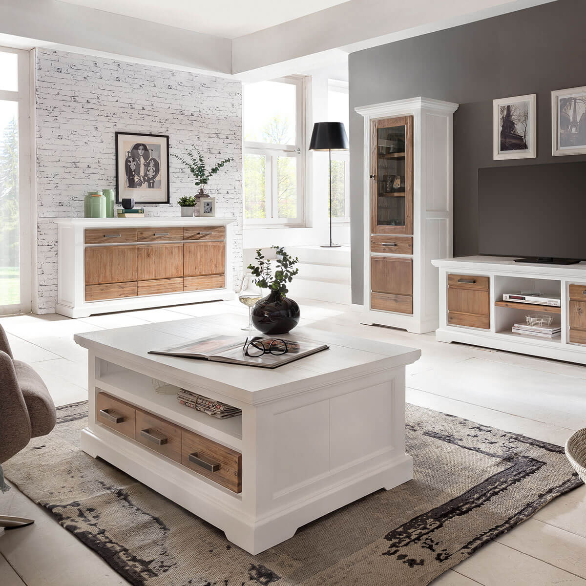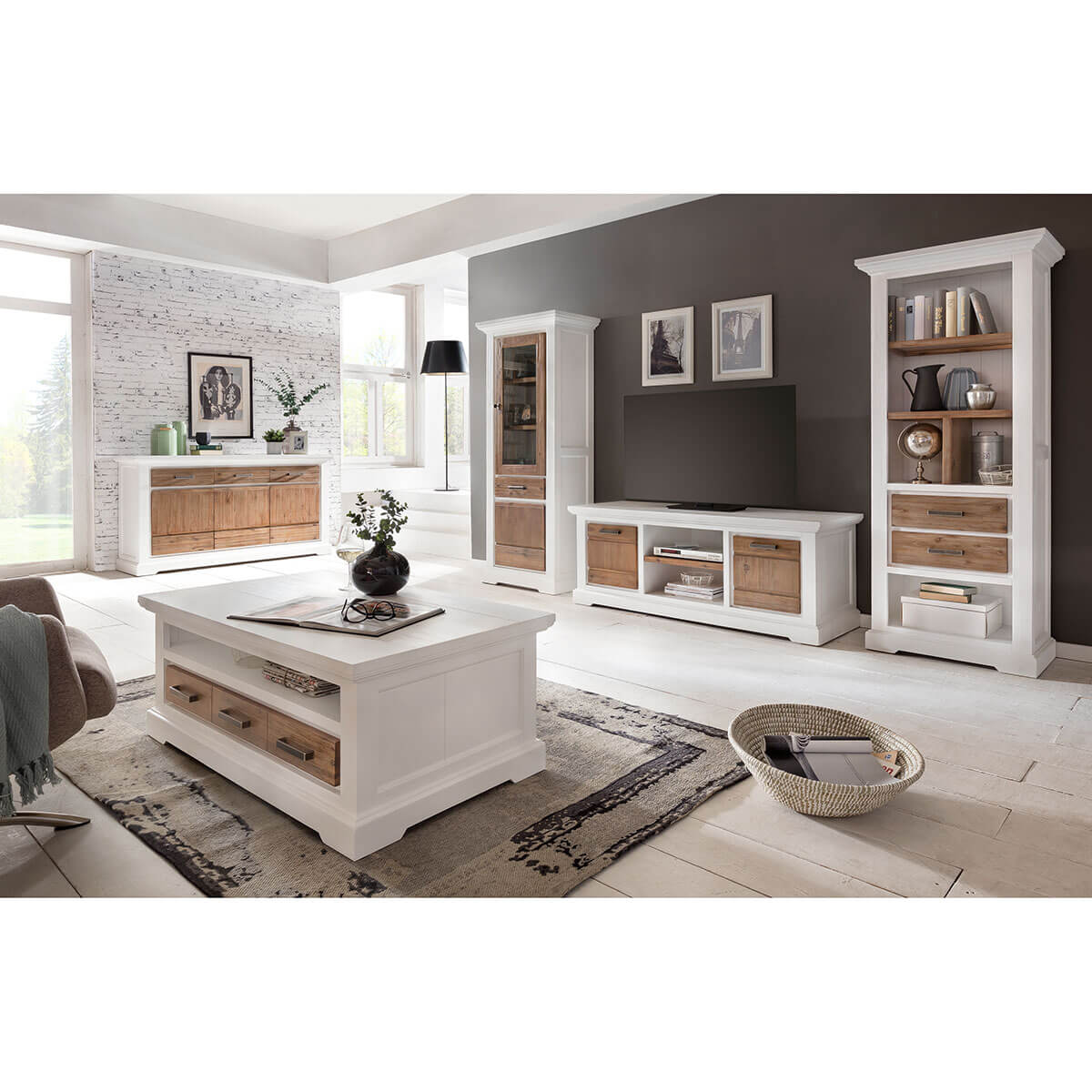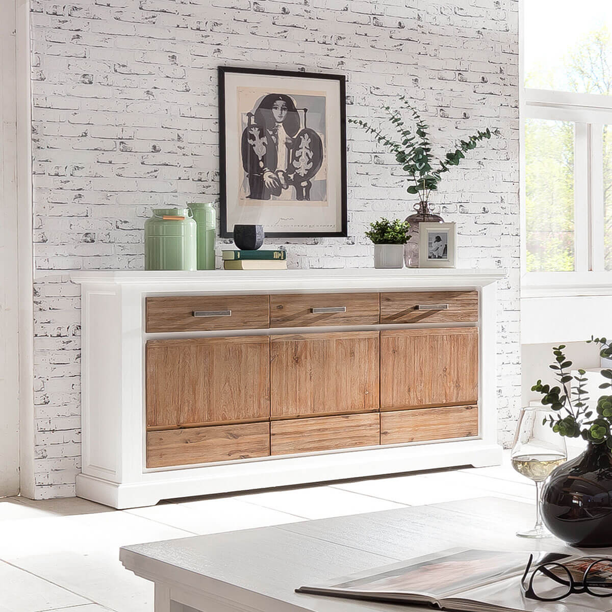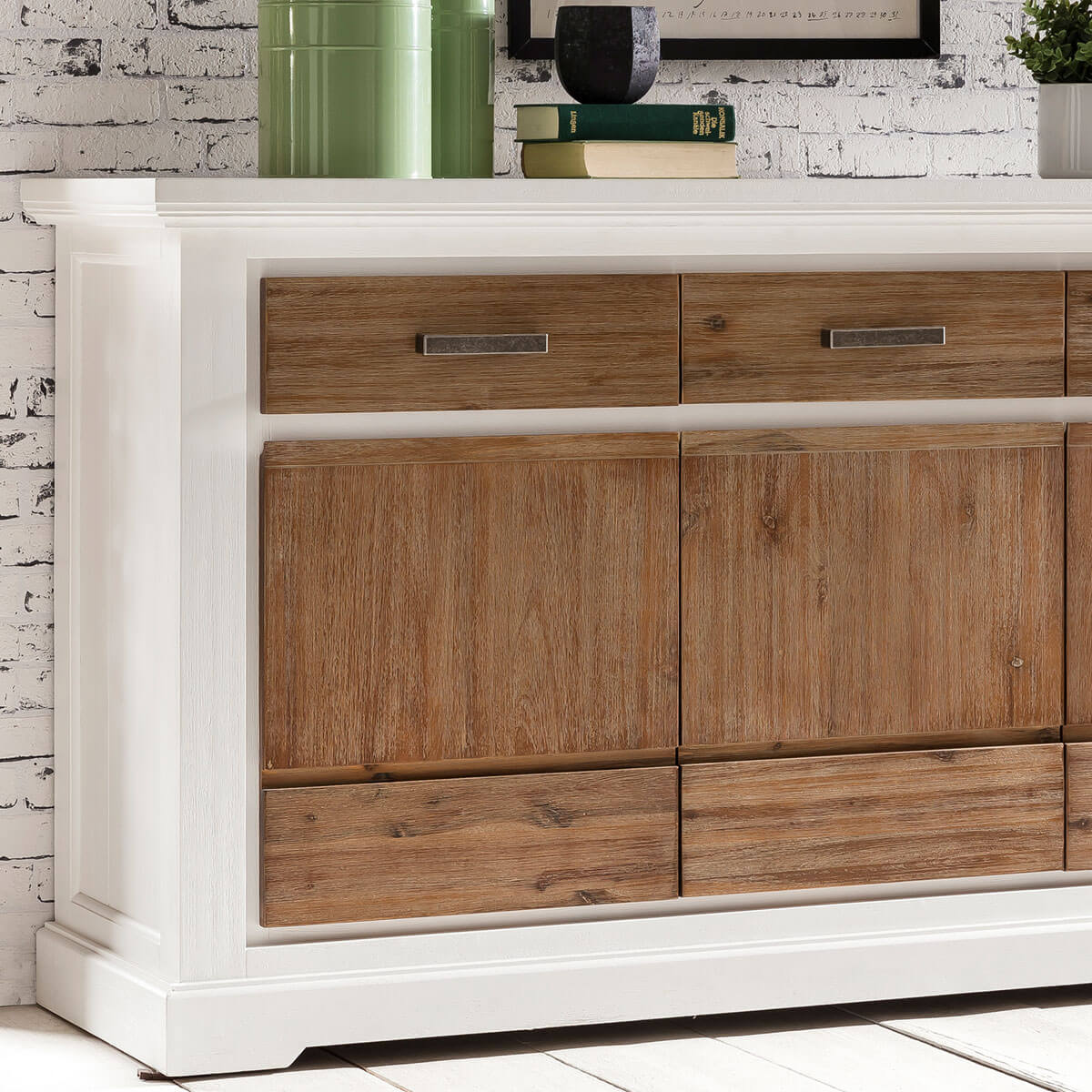 Sideboard Akazie massiv Weiß/Cappuccino gebürstet Lalé