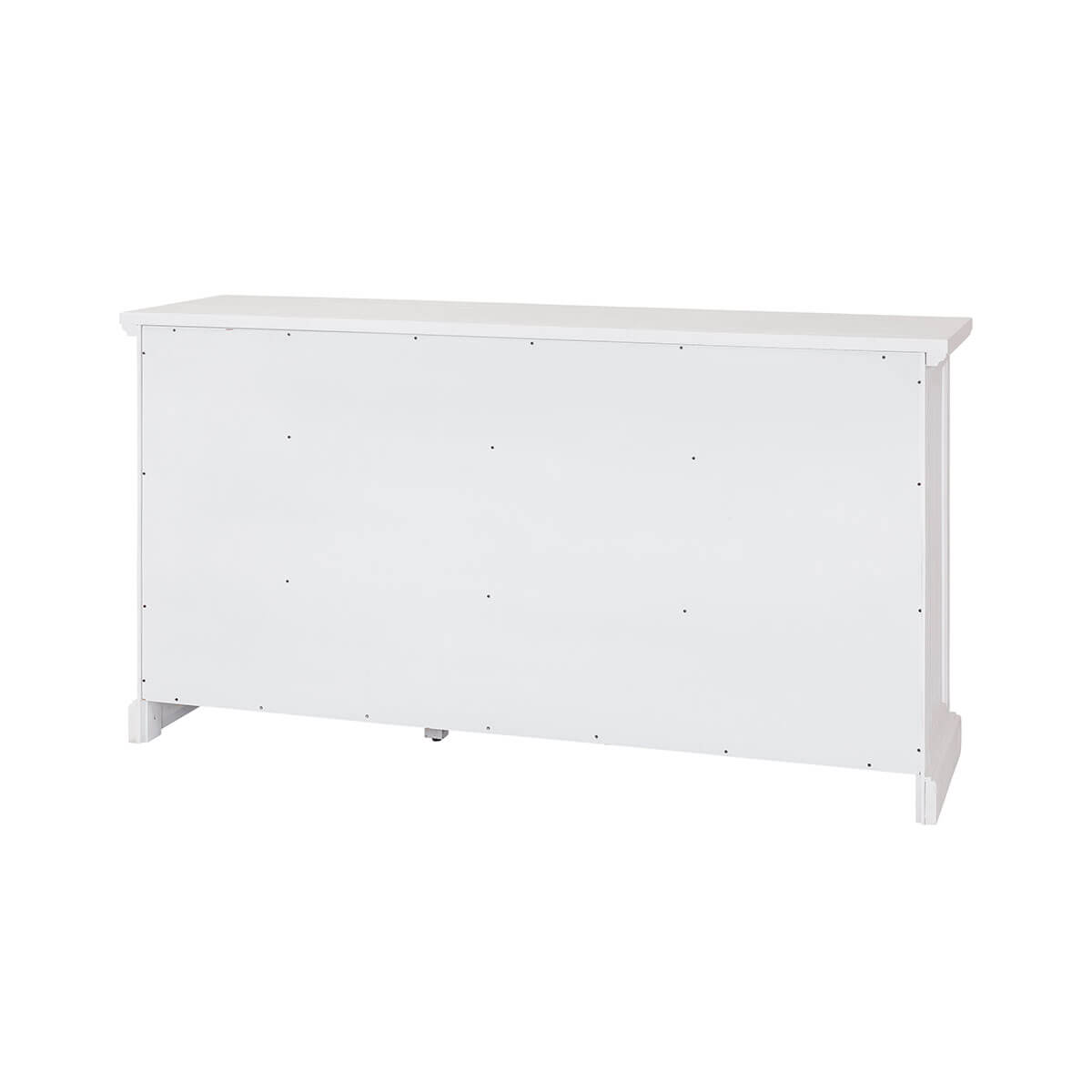 Insgesamt drei Schubkästen sorgen dafür, dass Besteck, Servierten und viele andere Kleinigkeiten einen ordentlichen Platz erhalten. Hinter den drei Holztüren befinden sich insgesamt vier Stauraumfächer. Die beiden linken Türen verbergen einen durchgehenden Einlegeboden hinter sich. Somit entstehen hier zwei breite Fächer, in welchen auch Spielesammlungen oder Tischdecken einen Platz finden. Hinter der rechten Tür ist ebenfalls ein Einlegeboden, sodass hier zwei schmale Fächer sind, welche für weiteren Stauraum sorgen.