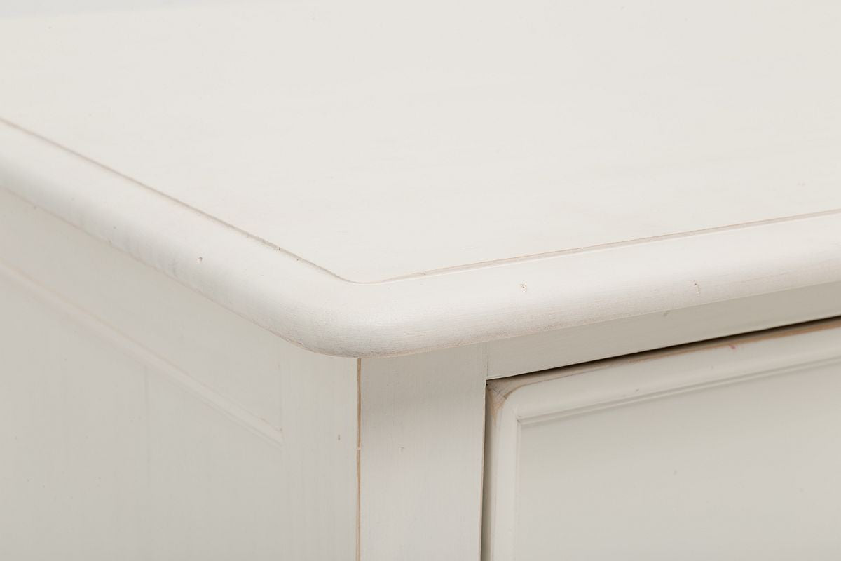 Pinie teilmassiv, komplett Weiß lackiert oder Weiß lackierter Korpus mit Absetzungen in Natur. Freuen Sie sich auf ein Revival des hochwertigen Pinienholzes und den Einzug in die Wohnungen von Menschen mit Geschmack und dem Auge für Wertigkeit.