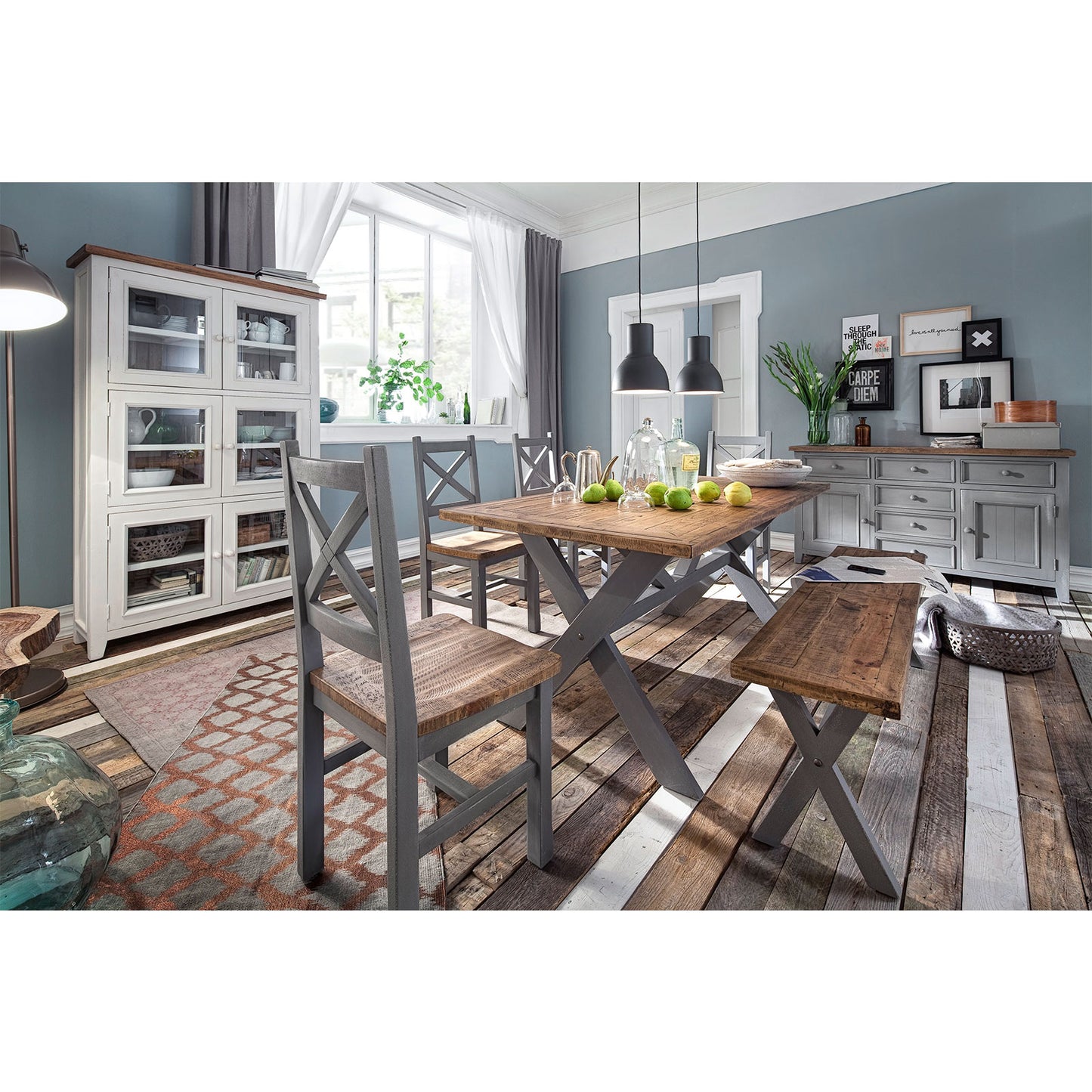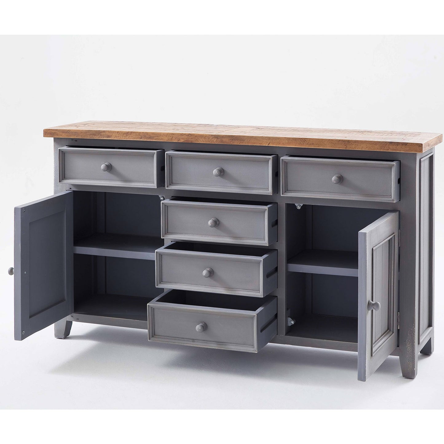 Sideboard Pinie massiv recycelt Grau / Natur Landhaus Byron