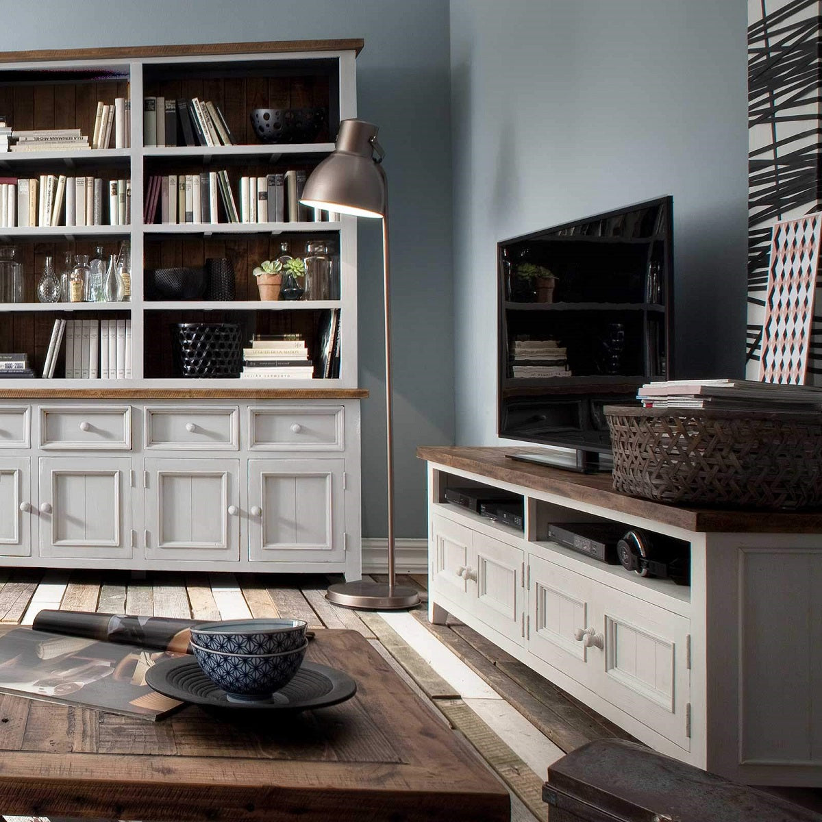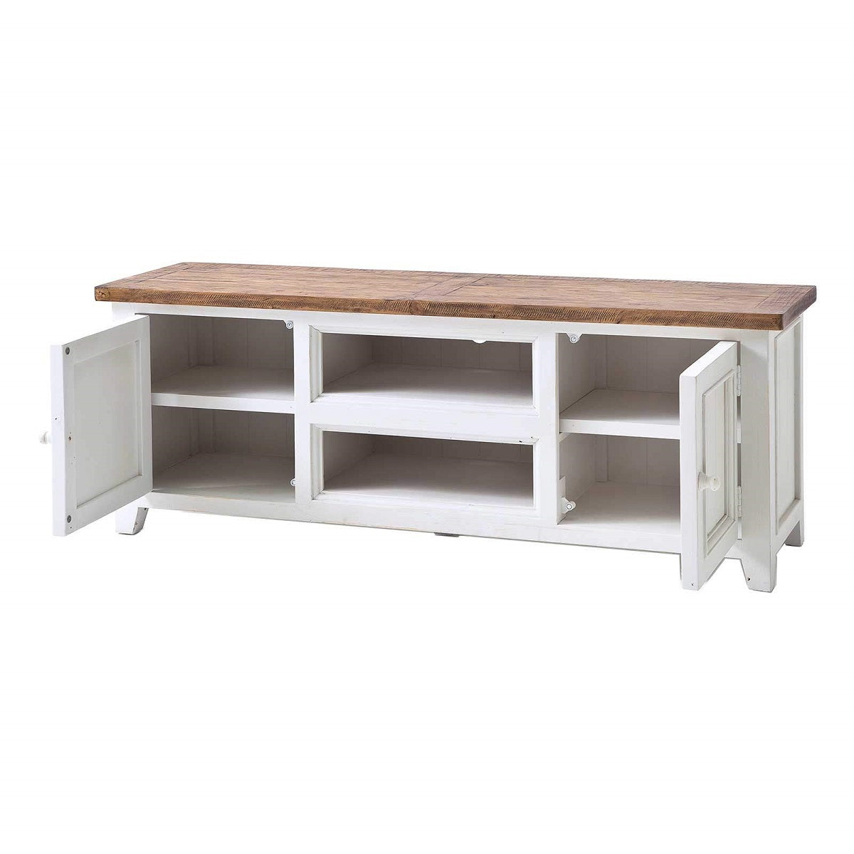 TV-Anrichte Pinie massiv recycelt Weiss / Natur Landhaus Byron