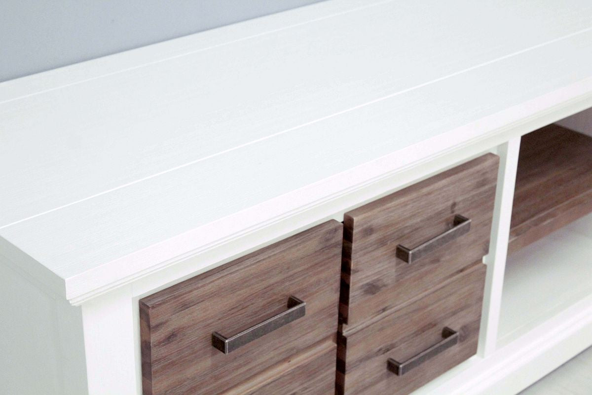TV-Schrank Akazie massiv Weiß/Cappuccino gebürstet Lalé