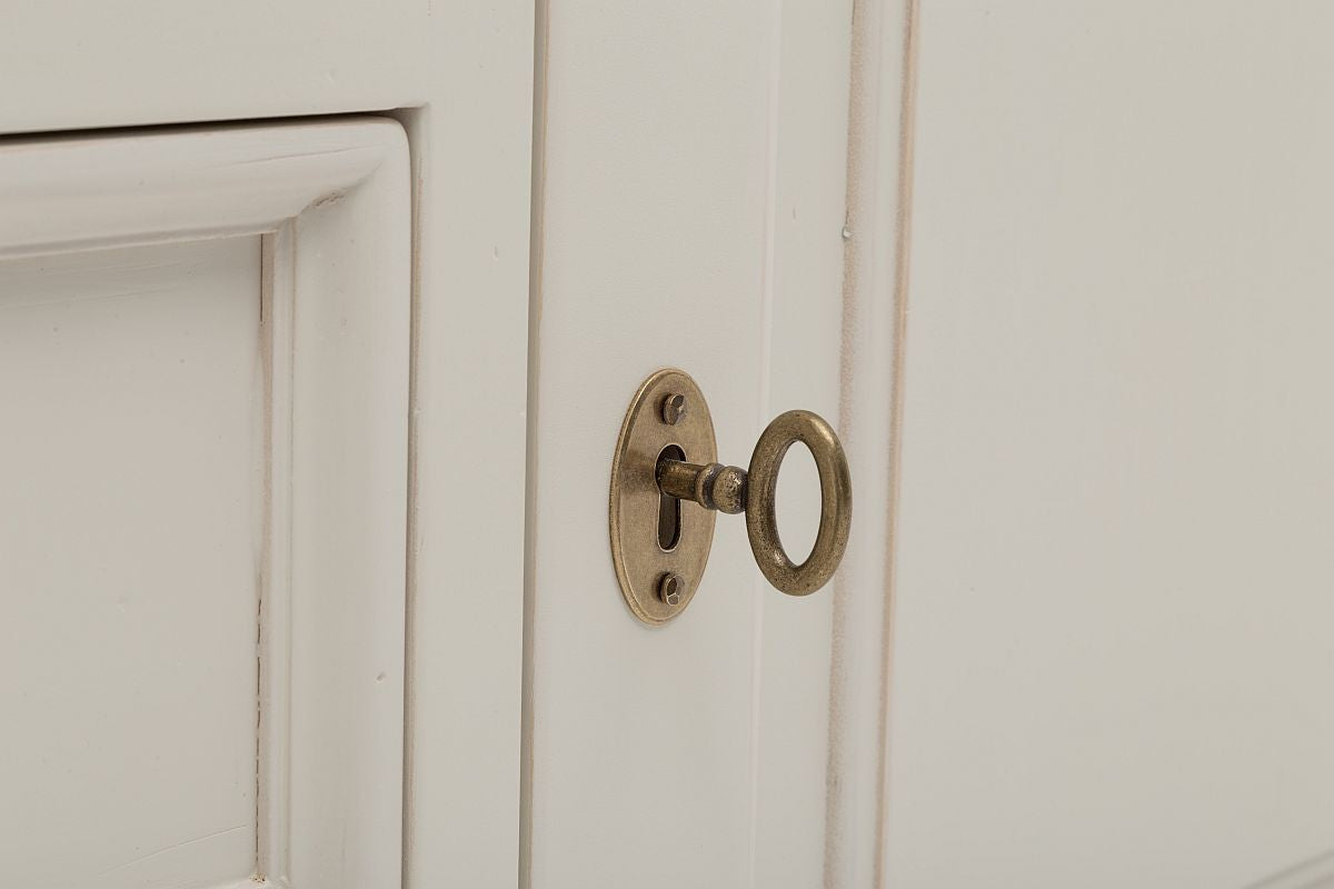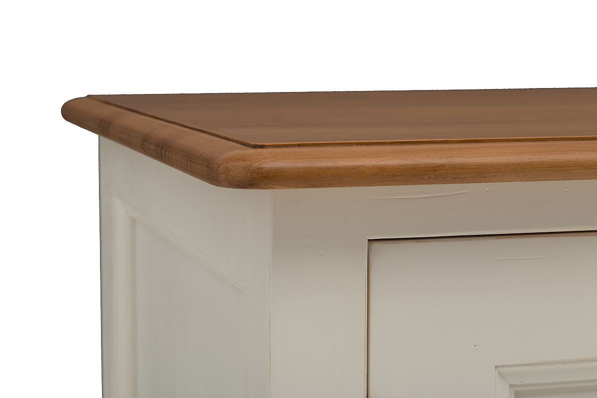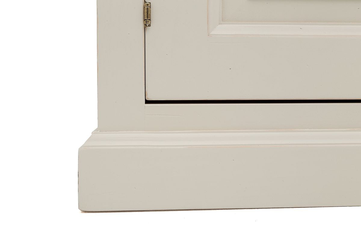 Pinie teilmassiv, komplett Weiß lackiert oder Weiß lackierter Korpus mit Absetzungen in Natur. Freuen Sie sich auf ein Revival des hochwertigen Pinienholzes und den Einzug in die Wohnungen von Menschen mit Geschmack und dem Auge für Wertigkeit.