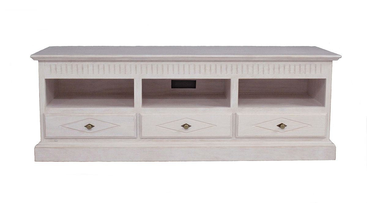 TV Wohnwand Pinie massiv Weiß gebürstet Malaga
