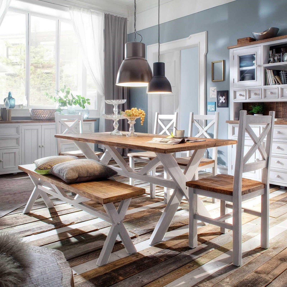 im verträumten Landhausstil verleiht jedem Raum eine helle und freundliche Atmosphäre. Eine Vitrine mit viel Stauraum und stilvollem Design. Der weiß lackierte Korpus harmoniert perfekt mit den naturfarbigen Absetzungen und kombiniert das aktuelle Landhausflair mit einem Hauch von Shabby Chic. Hinter einer Glastür mit edlem Facettenschliff können Sie schicke Accessoires staubgeschützt zur Schau stellen. Massives, recyceltes Pinienholz verleiht dem Möbelstück mit seiner einzigartigen Holzmaserung einen wohligen Charme gepaart mit natürlicher Leichtigkeit. Verspielte Details wie die knuffigen Holzgriffe heben den individuellen Look hervor und setzen Akzente. Jedes Möbelstück ist ein echtes Unikat und wurde mit viel Liebe zu Detail gefertigt. So wurden z.B. alle Kanten von Hand geschliffen und die Kanten abgerundet. Die lackierte Oberfläche schützt das Holz vor allen Anforderungen im Alltag, unterstützt die Langlebigkeit und sorgt für eine erfreulich einfache Pflege.