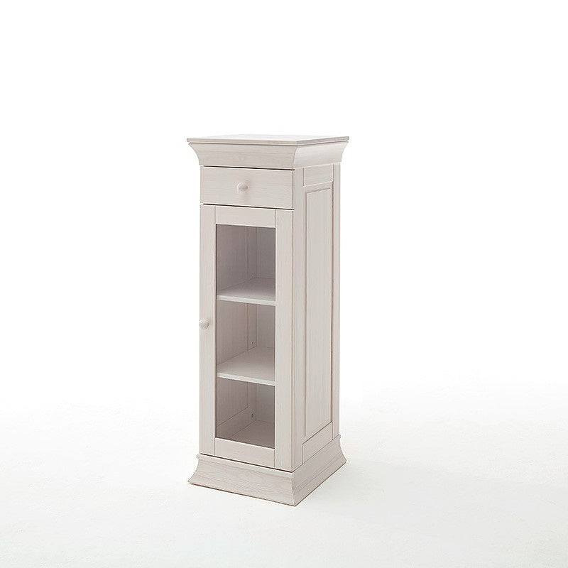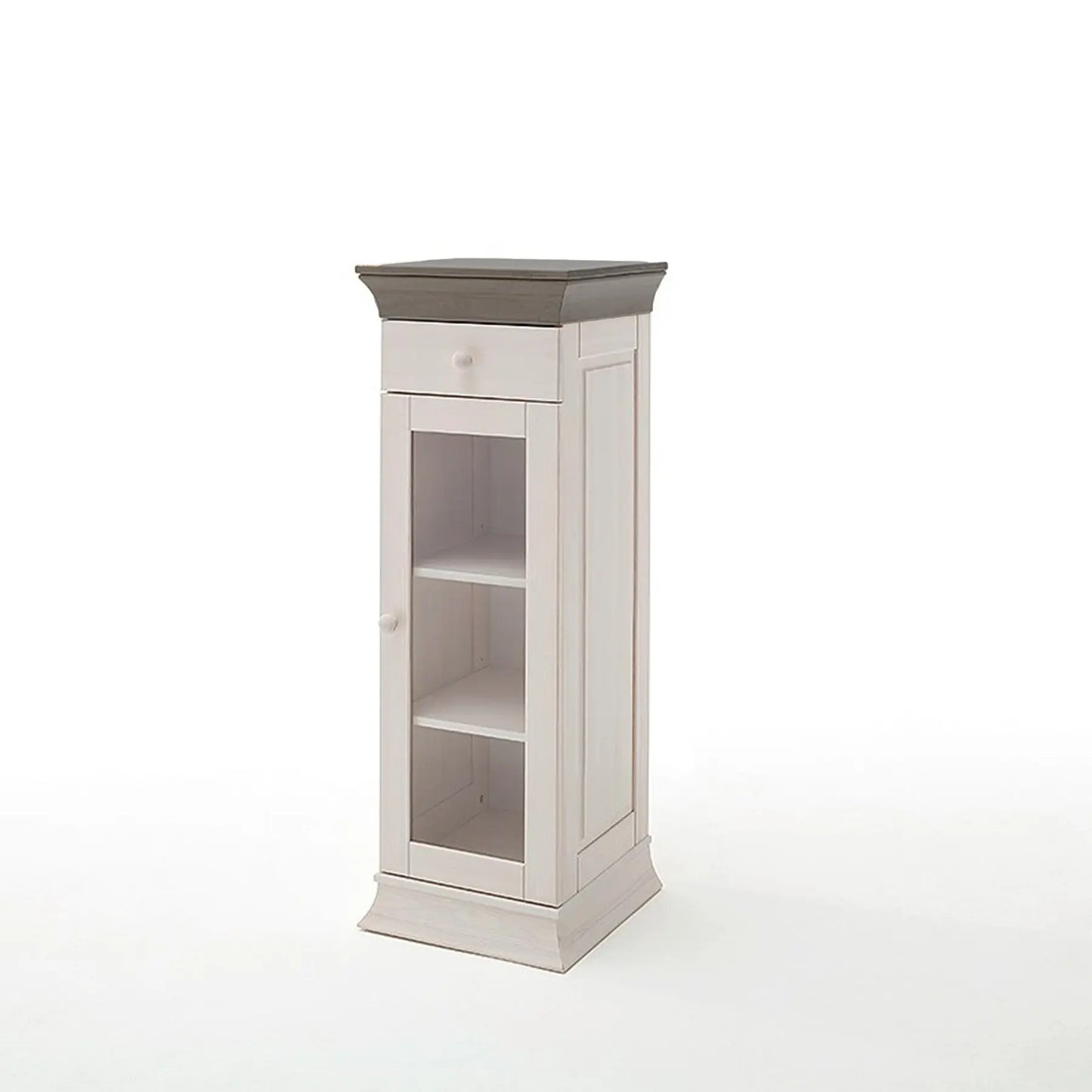 Diese Glasvitrine oder auch Blumensäule ist ein ideales Accessoires für Menschen, die den modernen Landhausstil lieben. Klares Design und handwerkliche Verarbeitung zeichnen dieses Möbelstück aus. Es ist vielseitig anwendbar und immer ein Blickfang. Hübsch dekoriert verleiht es jedem Raum ein gemütliches Ambiente und wertet auch kleinere Ecken perfekt auf.