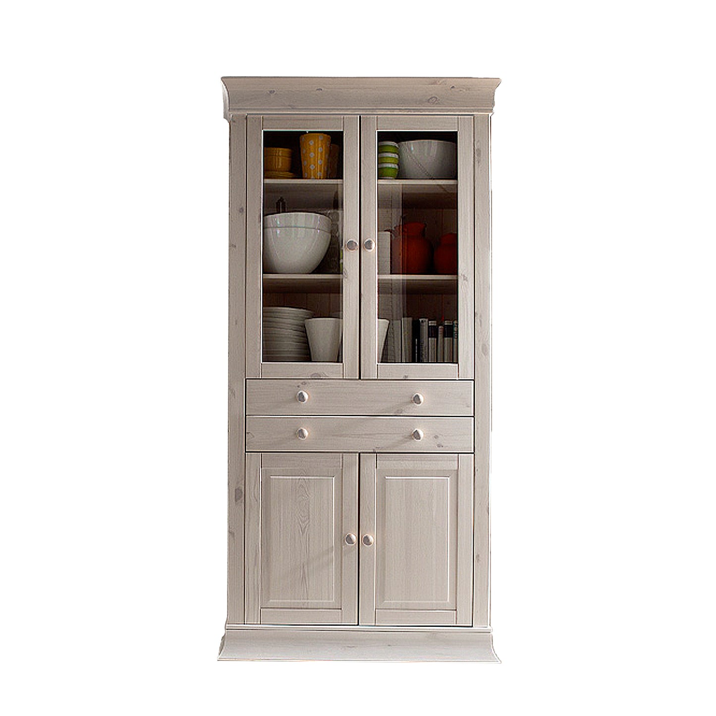 steht für ein natürliches Ambiente im modernen Landhausstil. Hell und freundliche verleiht er jedem Raum eine behagliche Stimmung. Die weiße Oberfläche des massiven Kiefernholzes unterstreicht den Einsatz natürlicher Materialien und hebt diese zusätzlich hervor. Das Design ist urig und gemütlich und dennoch mit einer klaren Formensprache versehen.
