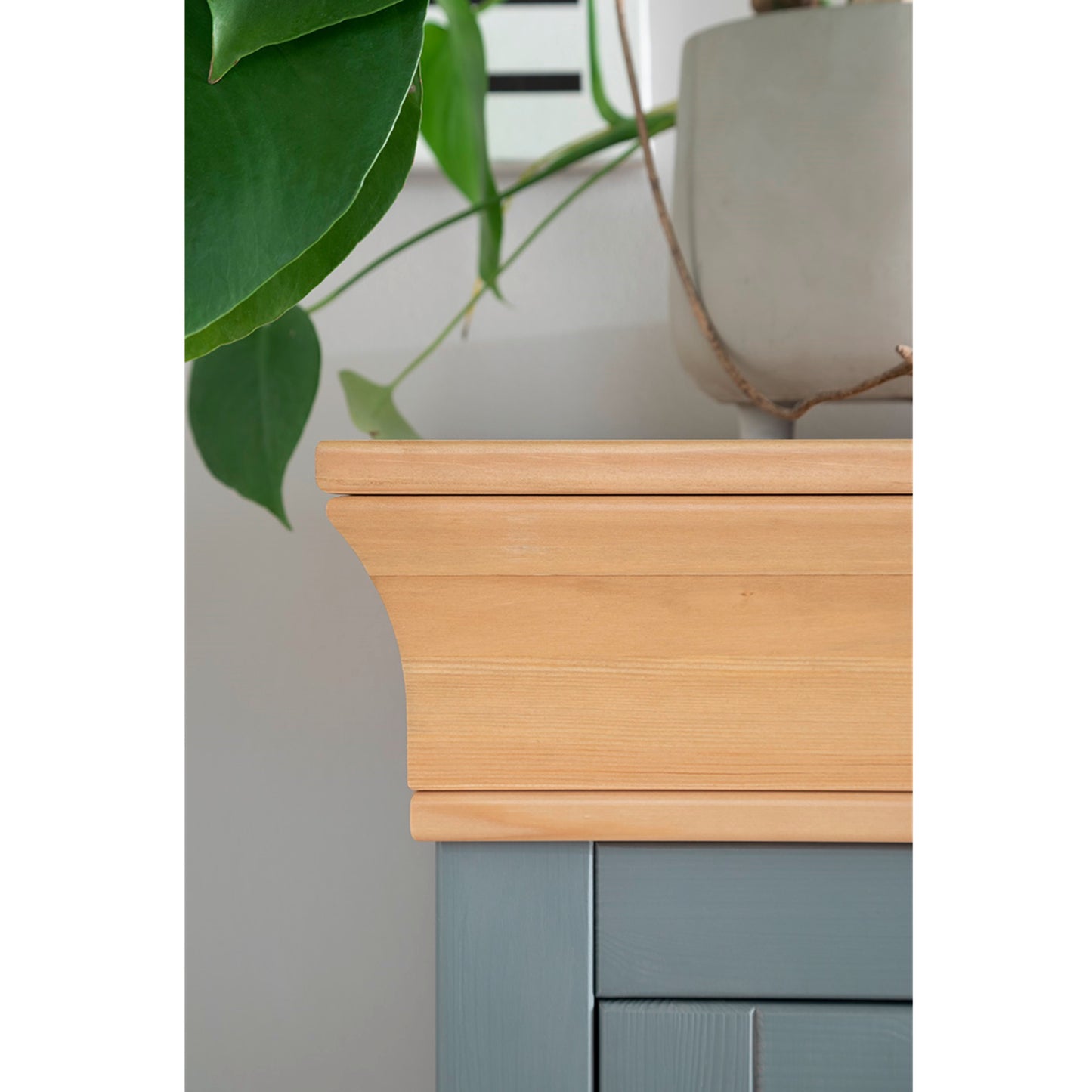 stammt aus heimischen Wäldern und steht für Nachhaltigkeit. Die Kiefer ist ein immergrüner Nadelbaum, der in der Herstellung von Massivholzmöbeln eine wichtige Rolle spielt. Kurze Transportwege und problemlose Verarbeitung machen das Holz so beliebt und sorgen für eine faire Preisgestaltung.