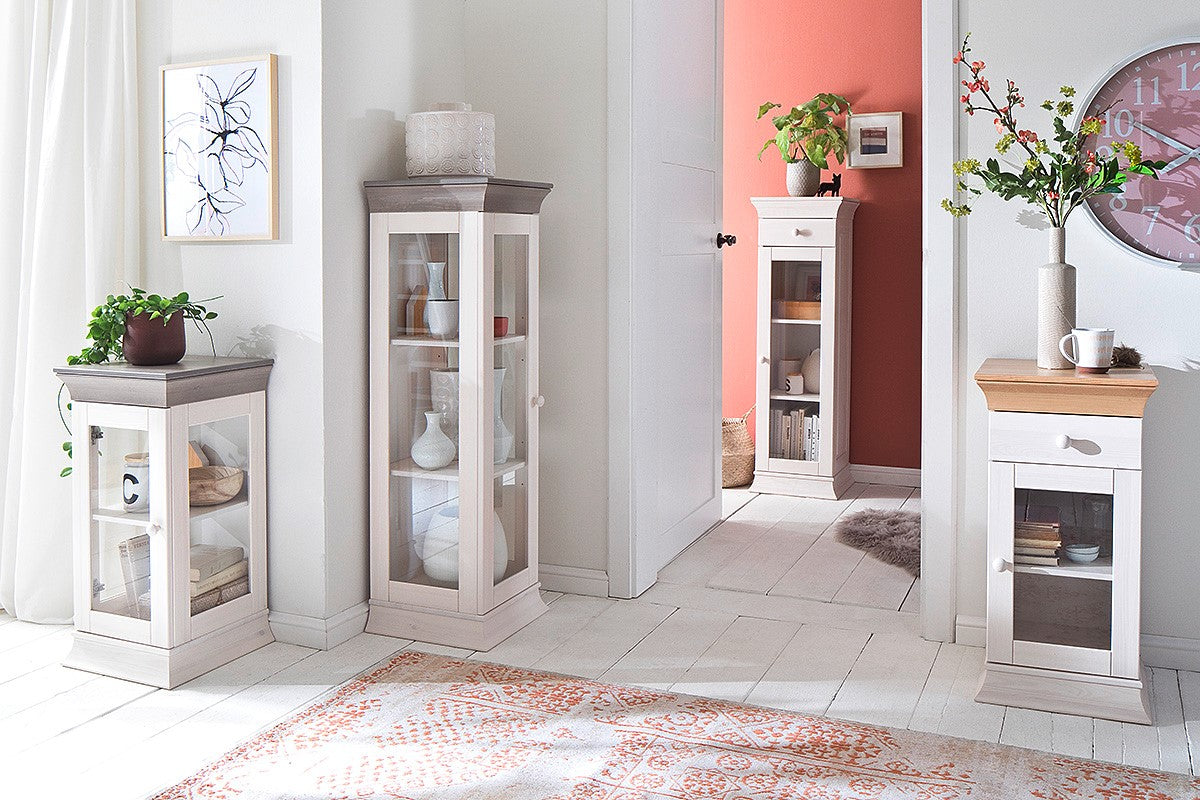 Vitrine Kiefer massiv weiß-lava Landhausstil - Boston