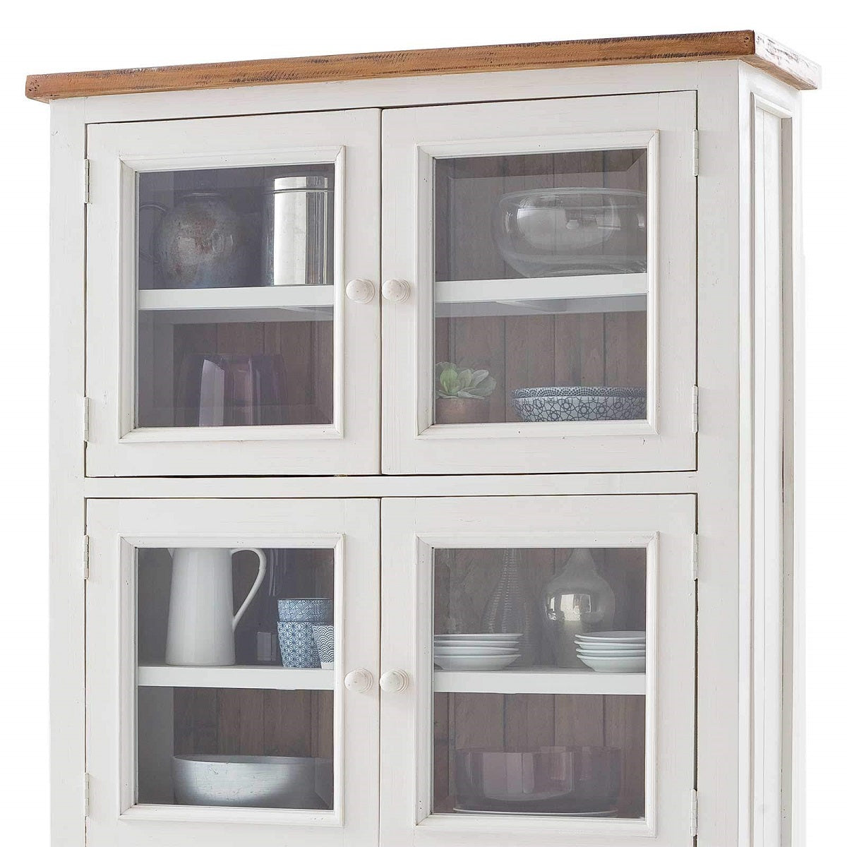 Vitrine Pinie massiv recycelt Weiss / Natur Landhaus Byron