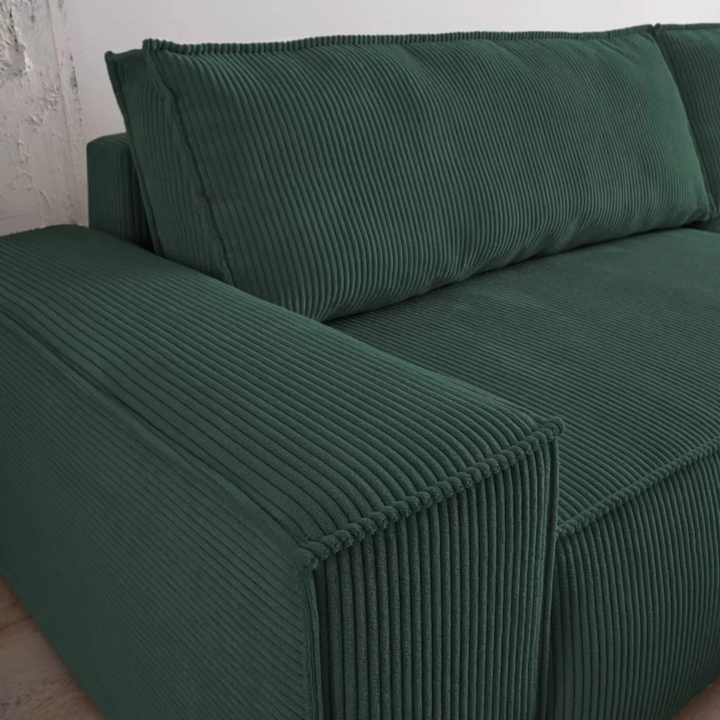 Ecksofa mit weichem Cordbezug in modernem Grün