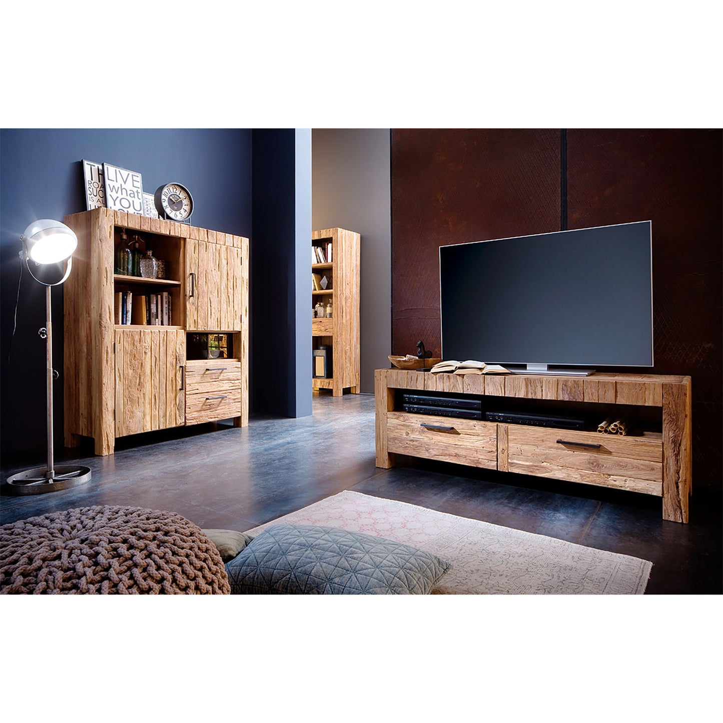 wurde in aufwendiger Handarbeit zu einem echten Blickfang gefertigt. Das massive Teakholz mit seiner außergewöhnlichen Oberfläche in Old Rustic begeistert Menschen, die das Außergewöhnliche lieben. Maja, authentisch, individuell und immer ein echtes Unikat. Die raue Oberfläche aus Stückelholz unterstreicht das einzigartige Design und setzt den rustikalen Charakter in Szene. Ein Couchtisch mit praktischer Ablage, der immer im Mittelpunkt steht.