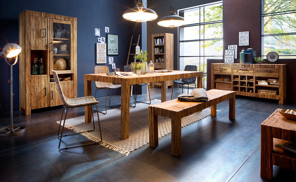 wurde in aufwendiger Handarbeit zu einem echten Blickfang gefertigt. Das massive Teakholz mit seiner außergewöhnlichen Oberfläche in Old Rustic begeistert Menschen, die das Außergewöhnliche lieben. Maja, authentisch, individuell und immer ein echtes Unikat. Die raue Oberfläche aus Stückelholz unterstreicht das einzigartige Design und setzt den rustikalen Charakter in Szene. Wertige Metallgriffe im Antiklook fügen sich harmonisch ins Gesamtbild ein und runden das gelungene Ganze perfekt ab.