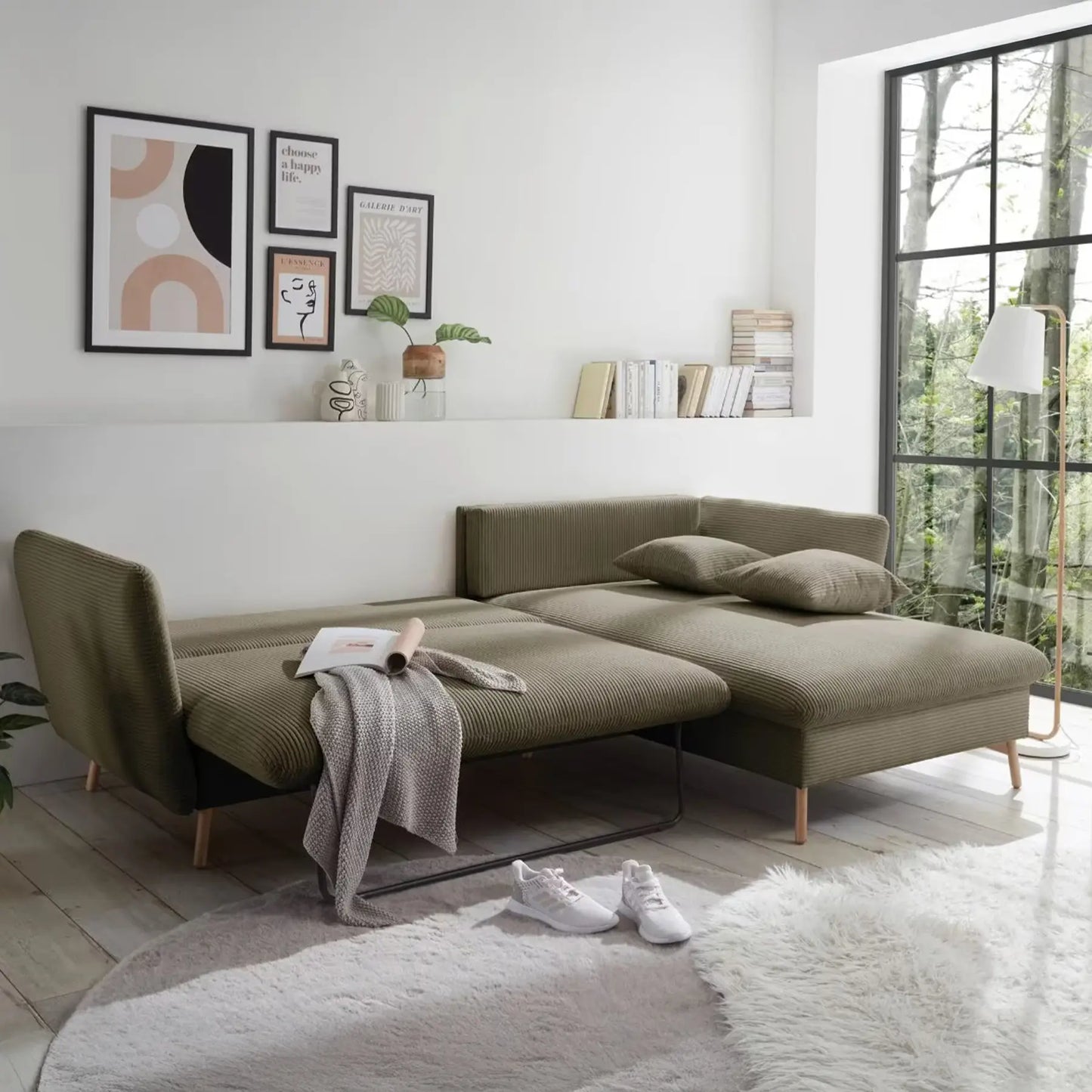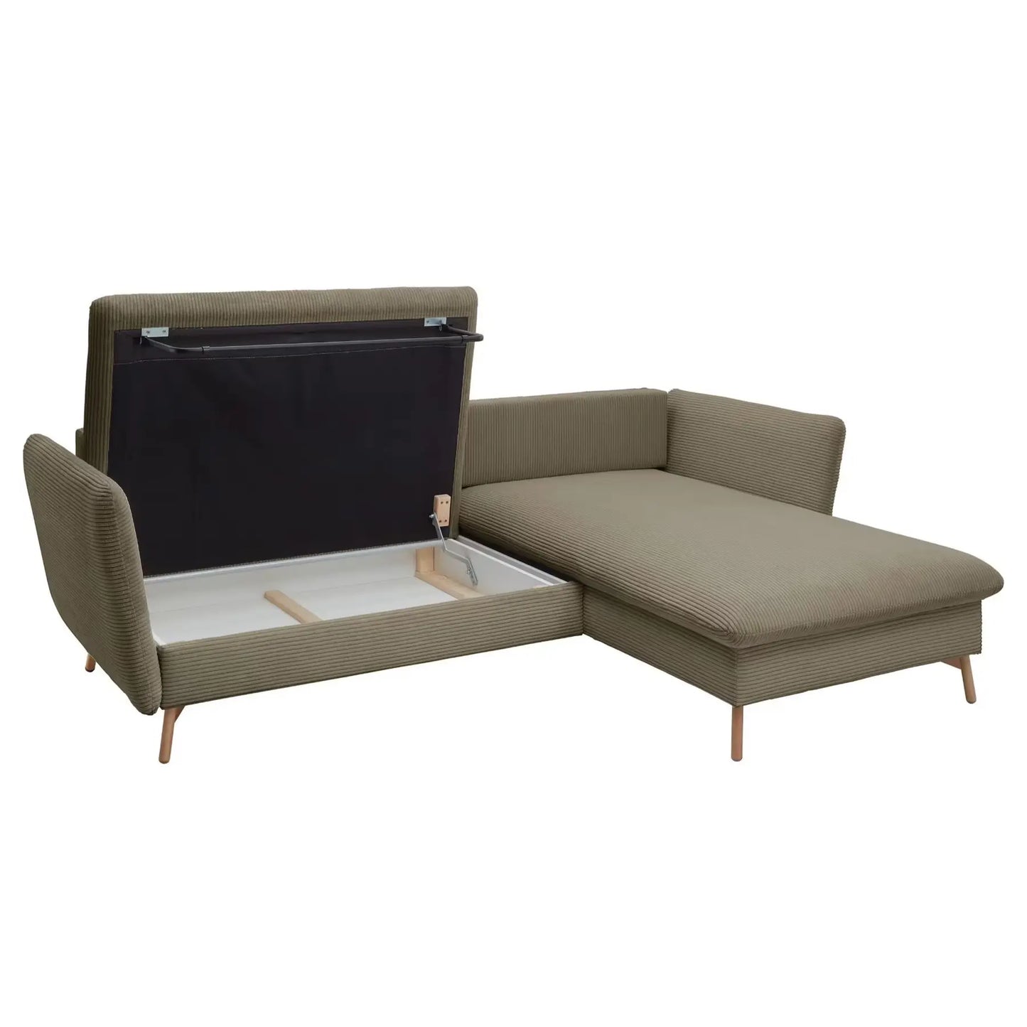 Ecksofa mit Schlaffunktion Cord grün – Merle