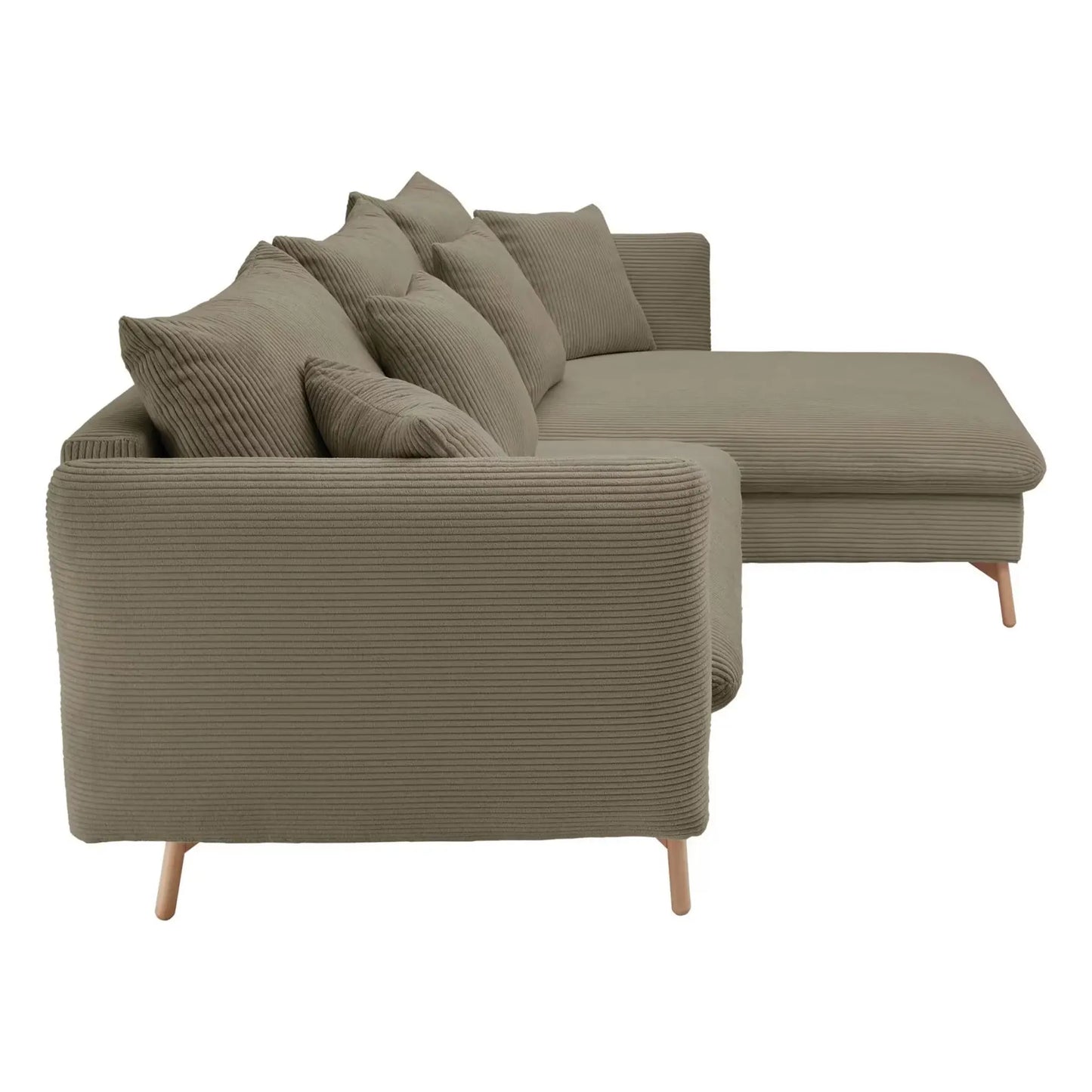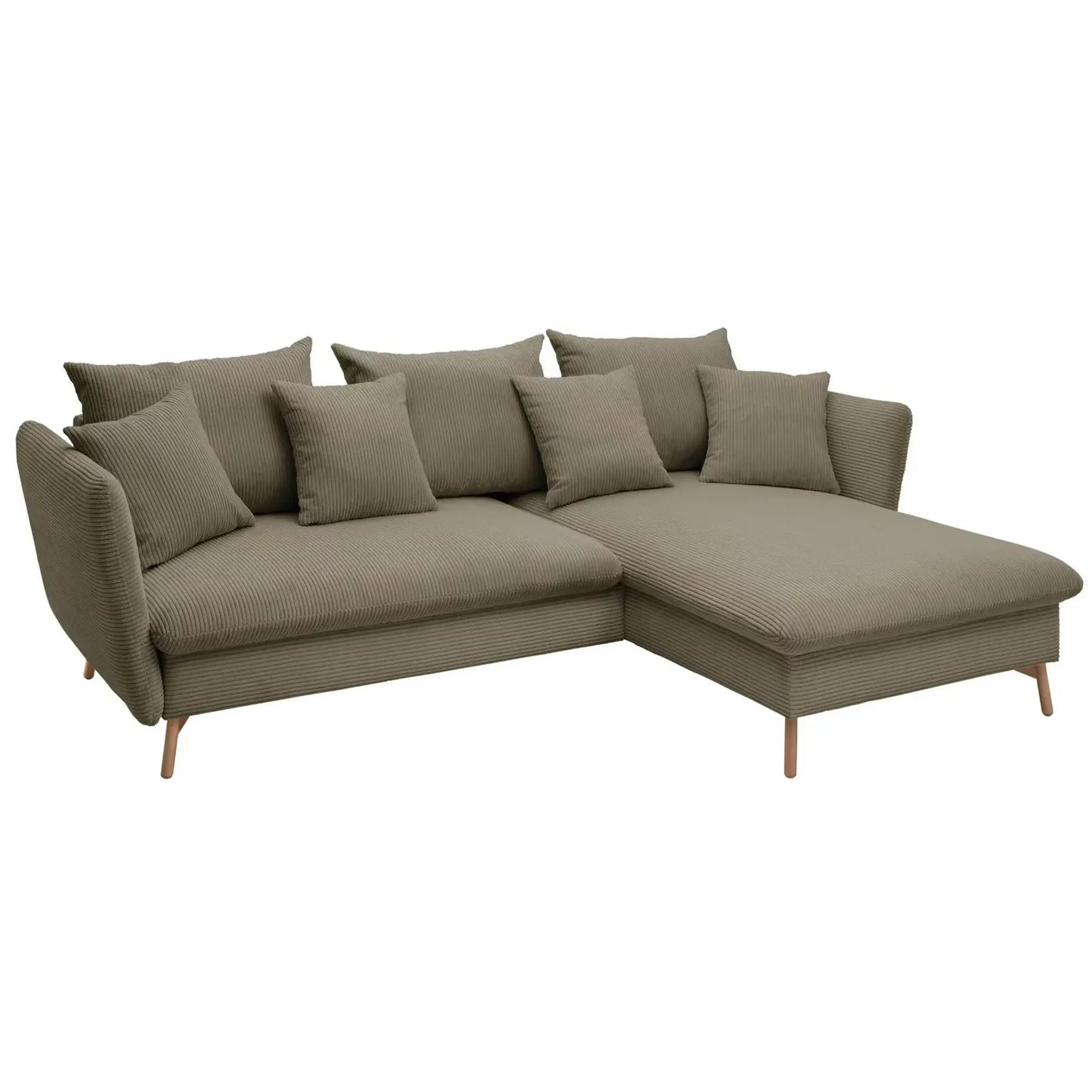 Das Ecksofa Merle kombiniert angesagtes Cord-Design mit funktionaler Vielseitigkeit. Der weiche Bezug in Grün bringt Frische und Behaglichkeit in Ihr Wohnzimmer und setzt zugleich ein modernes Statement. Dank seiner großzügigen Maße bietet das Sofa Platz für gemütliche Stunden mit Familie und Freunden – perfekt für den Alltag und entspannte Abende.
