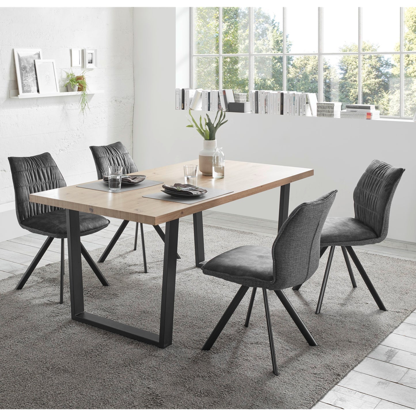 Das Gestell aus schwarzem Metall sorgt für eine langlebige und widerstandsfähige Konstruktion. Vier leicht abgeschrägte Füße unterstreichen das elegante Design und verleihen dem Stuhl seine ganz eigene Haptik.