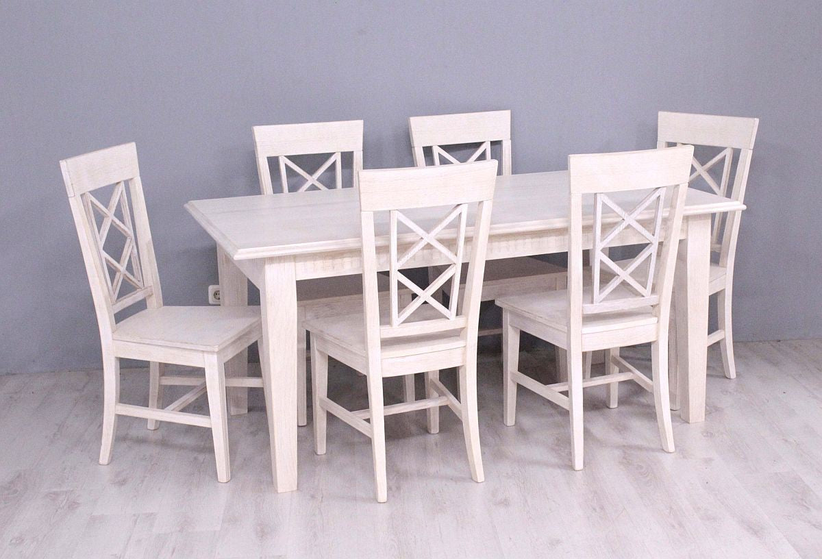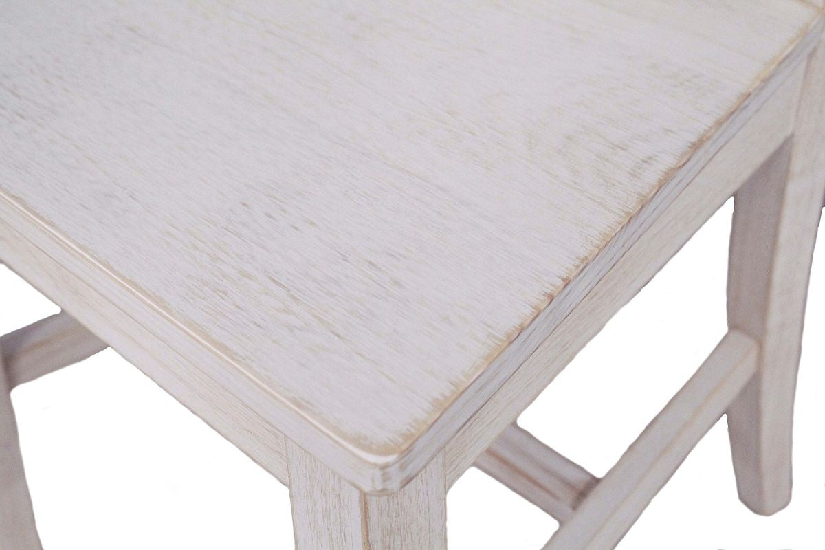 Eine Handmanufaktur aus Spanien fertigt diese Stühle mit viel Liebe zum Detail. Dies sieht man an den aufwendigen Streben der Rückenlehne. Auch die weiße Oberfläche, mit welcher das Pinienholz behandelt wird, wird noch in guter alter Handwerkstradition aufgetragen. Dies geschieht so fein, dass die natürliche Holzfarbe noch durchscheinen kann und für eine beeindruckende Optik sorgt.