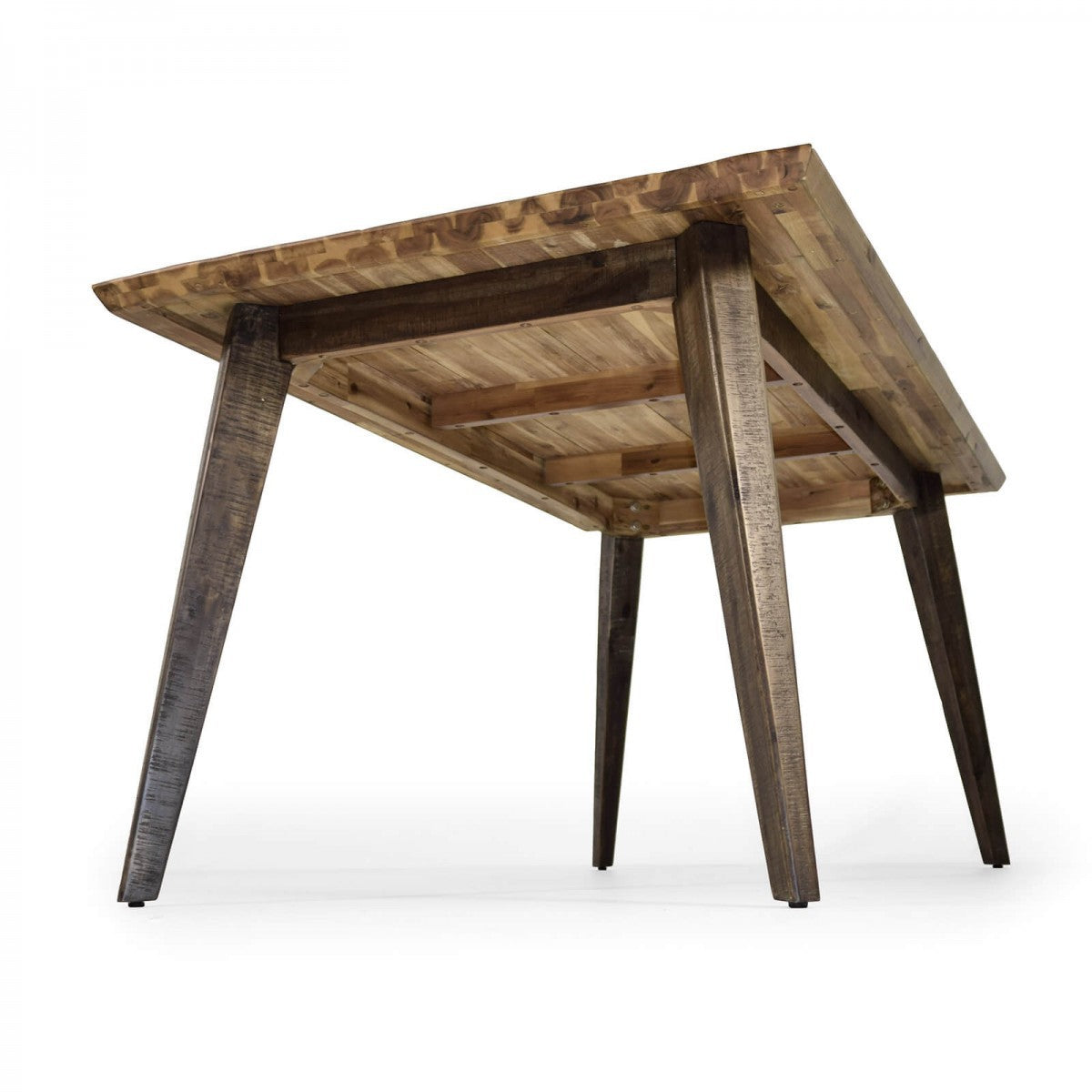 ist massives Akazienholz. Akazienholz zeichnet sich besonders durch die lebendige Maserung, den vielen Astlöchern, sowie kleinen Rissen in der Oberfläche aus. Damit diese natürlichen Merkmale des Holzes gut zur Geltung kommen, ist die Oberfläche bewusst rustikal und grob gehalten. Damit Ihr neuer Esstisch vor den äußeren Einflüssen geschützt ist, erhält er eine klare Lackierung. Weiterhin gehört das verwendete Material zu den harthölzern, welche als besonders langlebig und robust gelten.