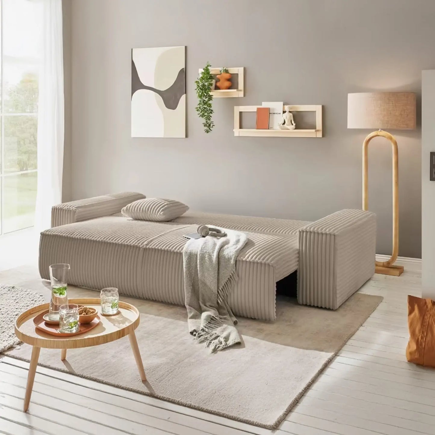 3-Sitzer Schlafsofa Breitcord Creme - Finnley