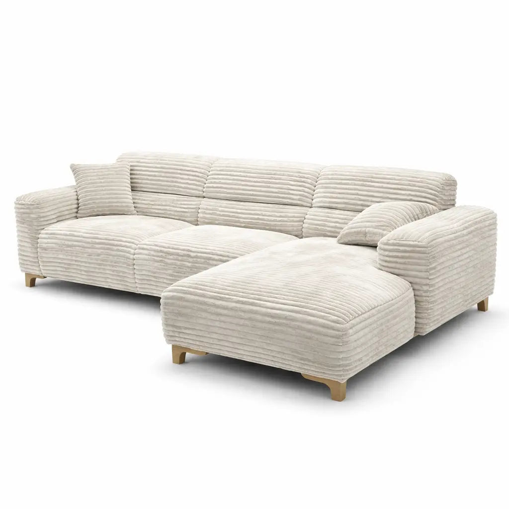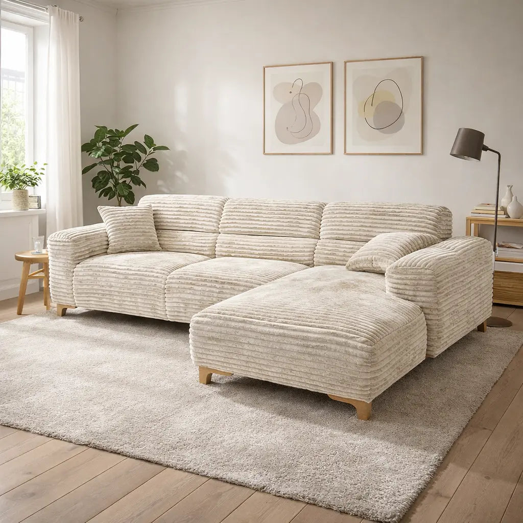 Couchgarnitur in beige mit Cordbezug und Holzfüßen