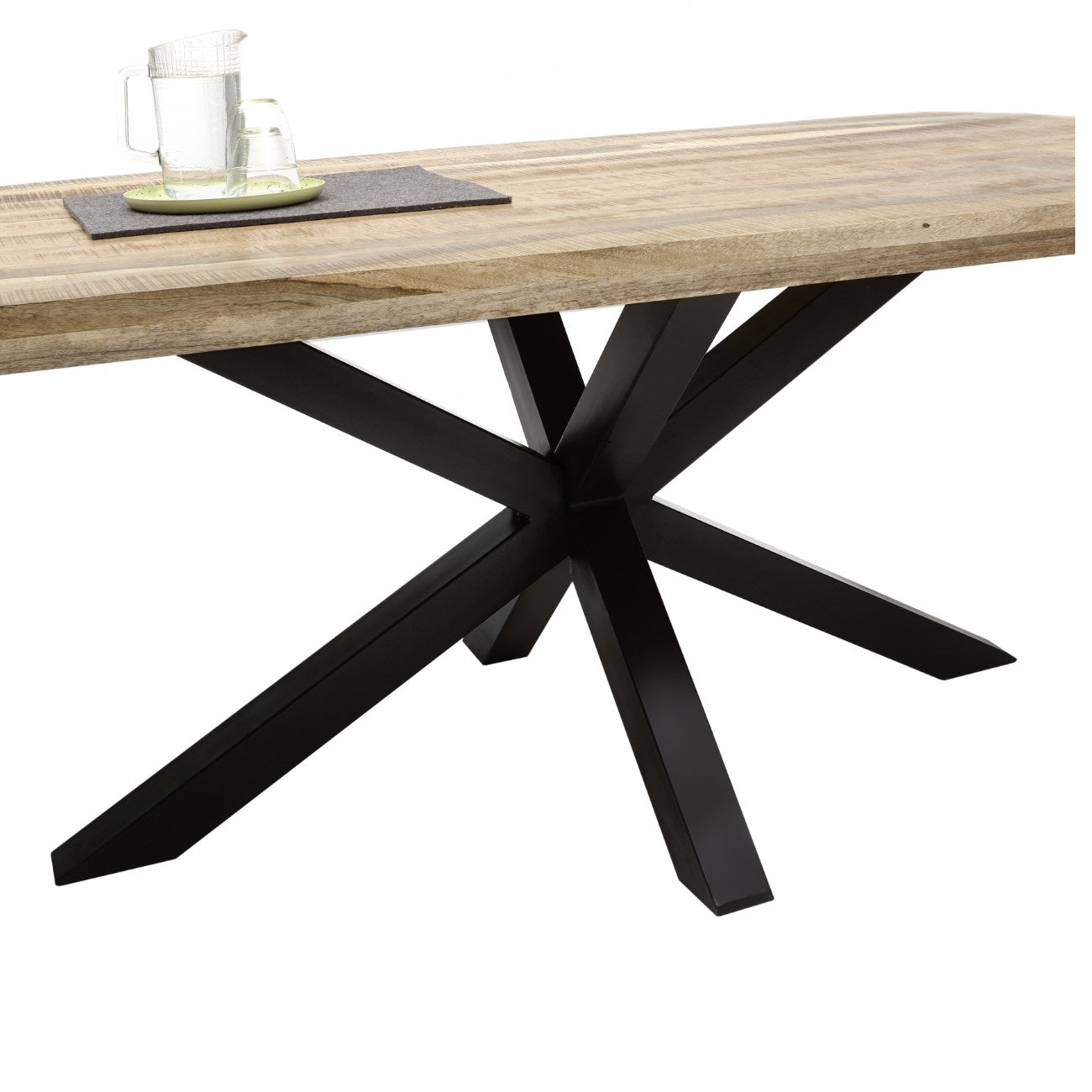 Im Kontrast zur massiven Tischplatte steht das 7,5 x 7,5