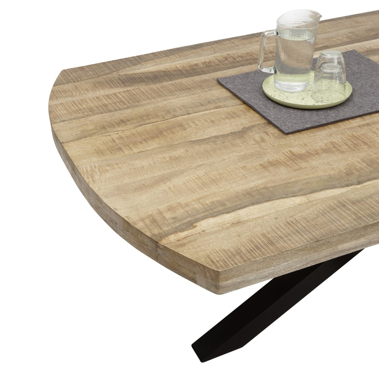 Charmes des massiven Mangoholzes wird durch leichte Verwerfungen oder auch Wölbungen
