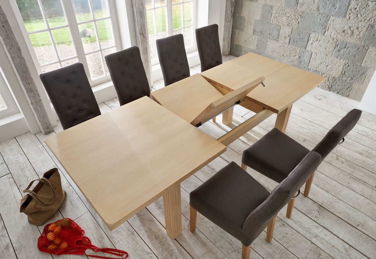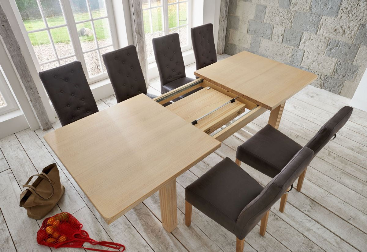 Wenn Sie einmal nicht so viel Platz benötigen, lassen Sie die Ausziehplatte von 60 cm einfach unter dem Tisch verschwinden.