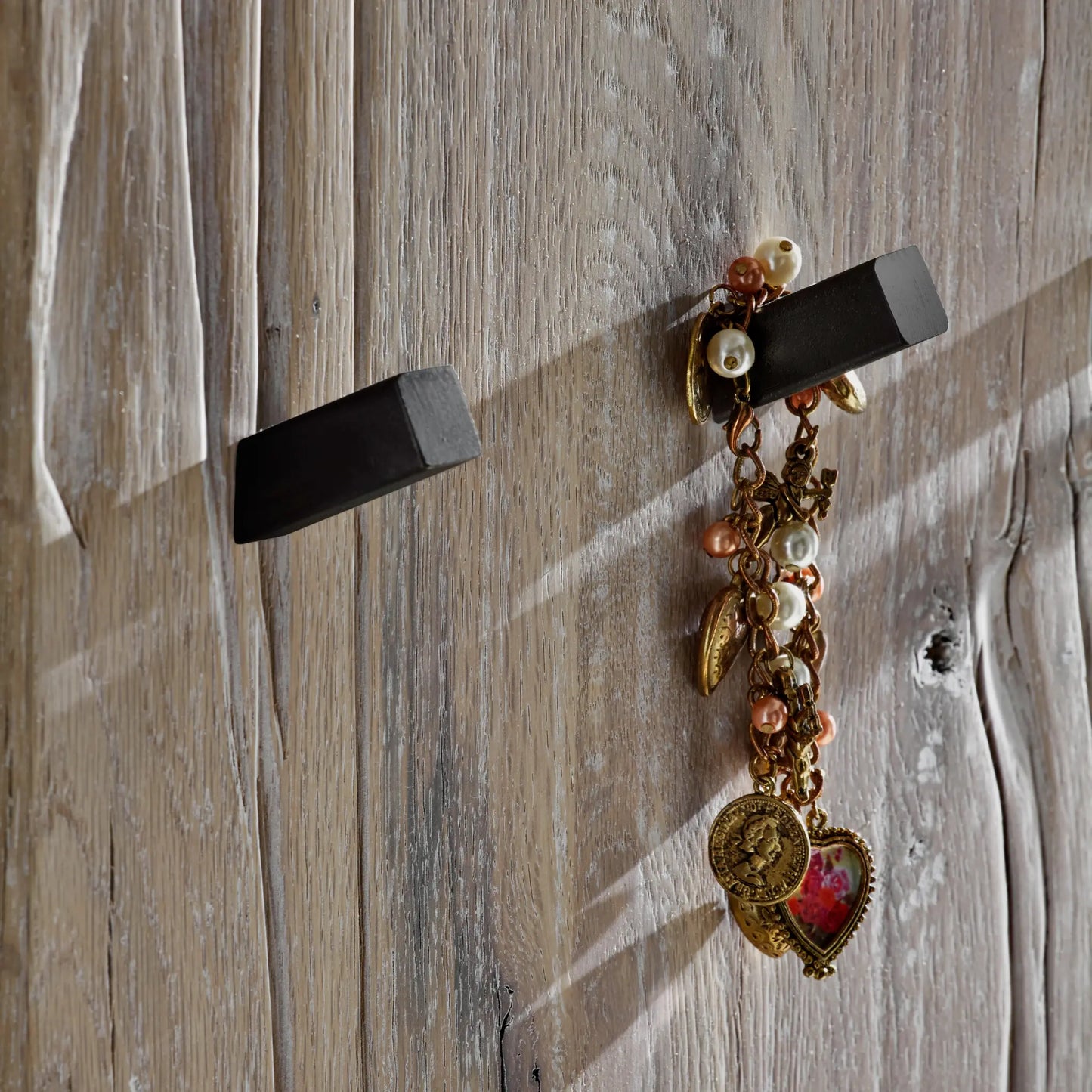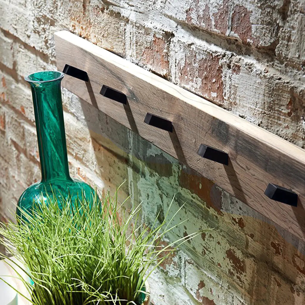 Hakenleiste aus Holz mit 4 schwarzen Haken