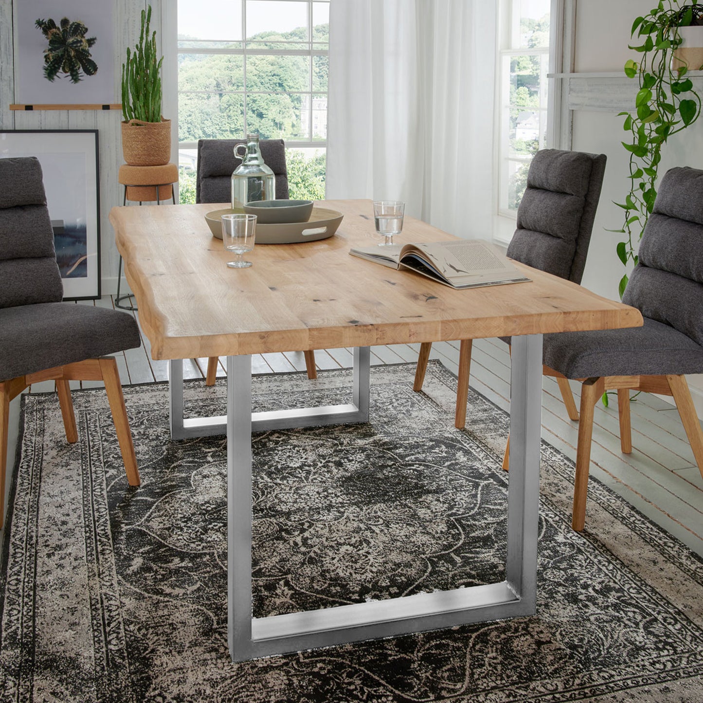 YORK Esstisch Eiche massiv | U-Fuß chromfarbig