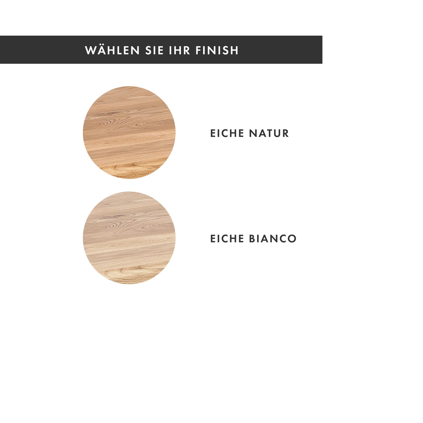 Die Tischplatte des Esstisches besticht durch ihre natürliche Schönheit und Robustheit. Hergestellt aus hochwertigem Eichenholz, ist sie sowohl in natürlicher Öl-Optik als auch in elegantem Bianco-Farbton erhältlich. Diese Oberflächenbehandlung betont nicht nur die charakteristische Maserung des Holzes, sondern schützt es auch vor den Spuren des Alltags. Ihr Esstisch bleibt somit auch nach vielen Jahren in erstklassigem Zustand. Das markante Tischgestell aus stabilem Metall verleiht dem Tisch eine moderne und industrielle Note. Neben der ästhetischen Wirkung sorgt es für eine solide Stabilität und sicheren Stand. Sie haben die Wahl zwischen verschiedenen Designs, sei es X-Fuß, U-Fuß, A-Fuß oder der einzigartige Spyder-Fuß.