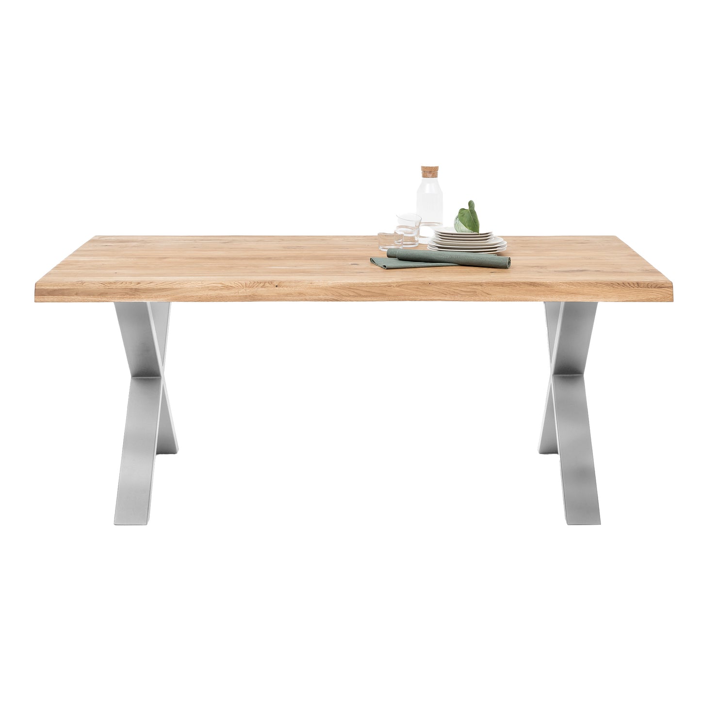 YORK Esstisch Eiche massiv | X-Fuß chromfarbig