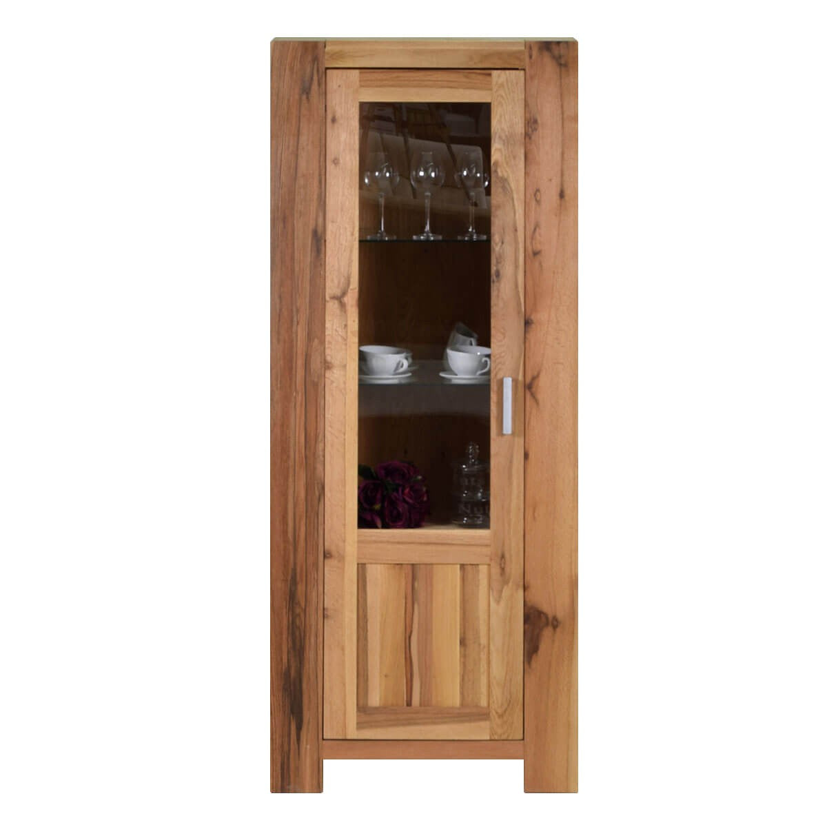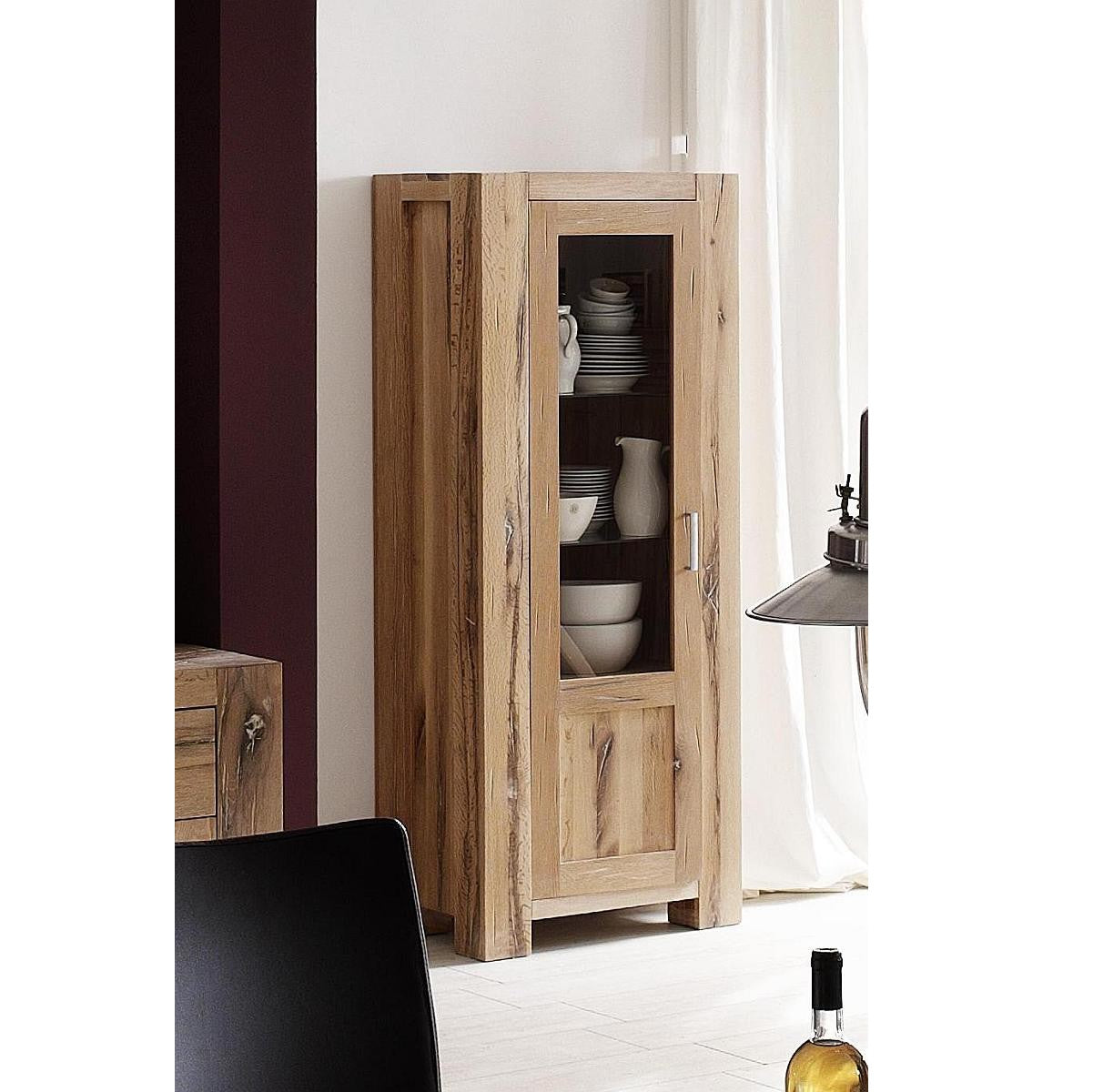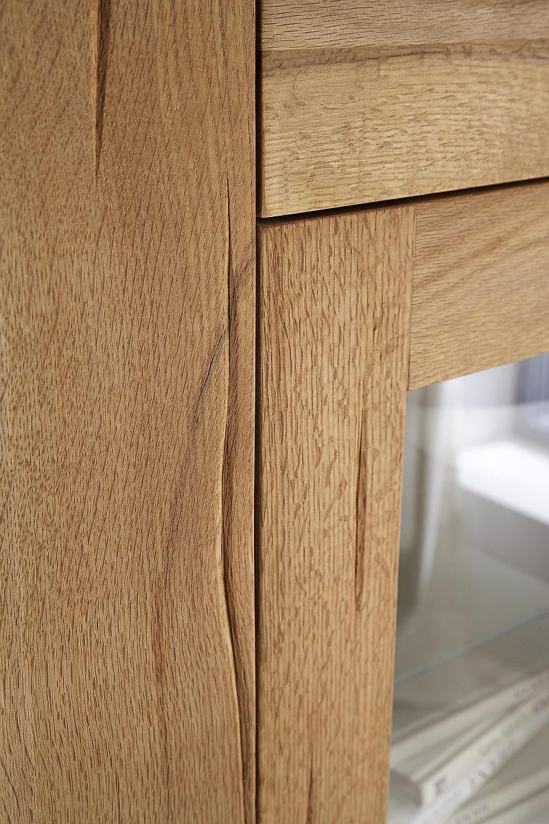 stammt von der Zerreiche. Dabei handelt es sich um eine Eichenart mit einem besonders hohen Drehwuchs. Dieser Drehwuchs sorgt dafür, dass das Holz besonders viele Kerben, Astlöcher und Wuchsrisse aufweist. Damit die Zerreiche zum Möbelbau verwendet werden kann, muss diese zur Trocknung ein aufwendiges Verfahren durchlaufen. Danach werden die markanten Merkmale des Holzes sogar noch von Hand nachgearbeitet, sodass sie bei dem Möbelstück optimal zur Geltung kommen.